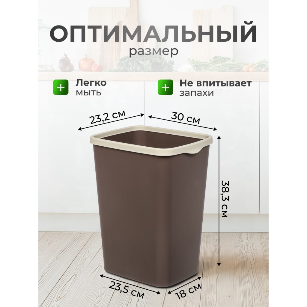 Мусорное ведро с фиксатором - это удобный и практичный аксессуар для любого дома или офиса. Стильная урна универсальной прямоугольной формы и практичного шоколадного цвета с контрастным фиксатором подойдет под любой интерьер.