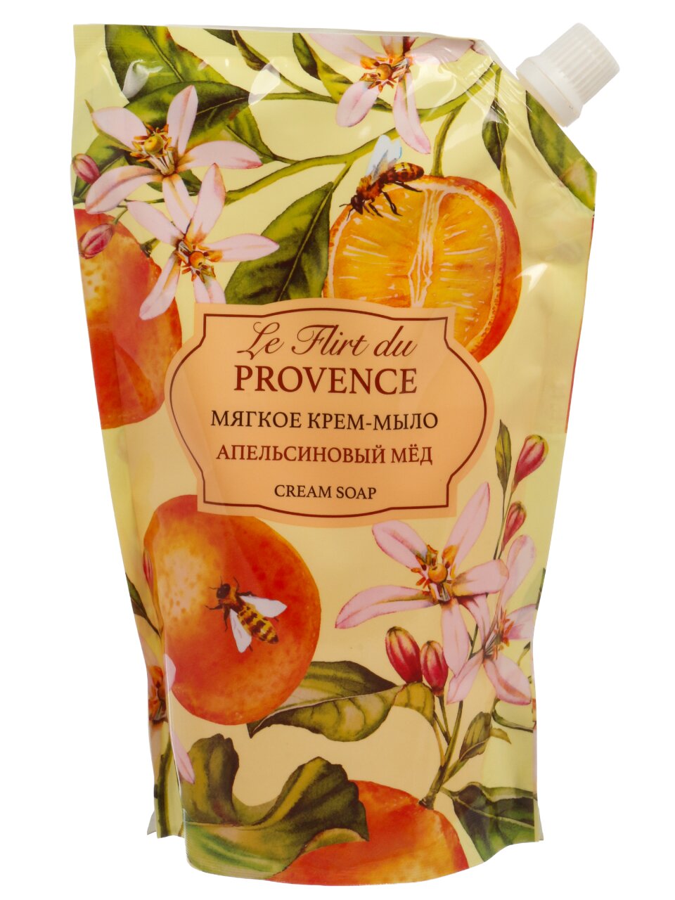 Крем-мыло Le Flirt Du Provence «Апельсиновый мед» 500 мл: мягкий уход для рук, натуральные ароматы, экономичный дой-пак — выгодно для дома и дачи.