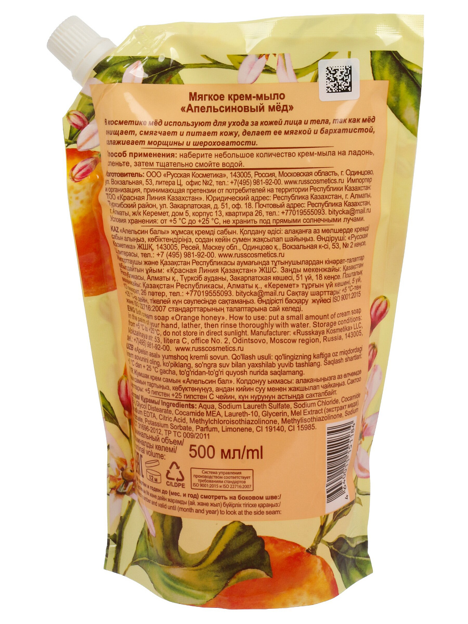 - Уникальная формула с ароматом апельсинового меда — мягко очищает и увлажняет кожу рук.