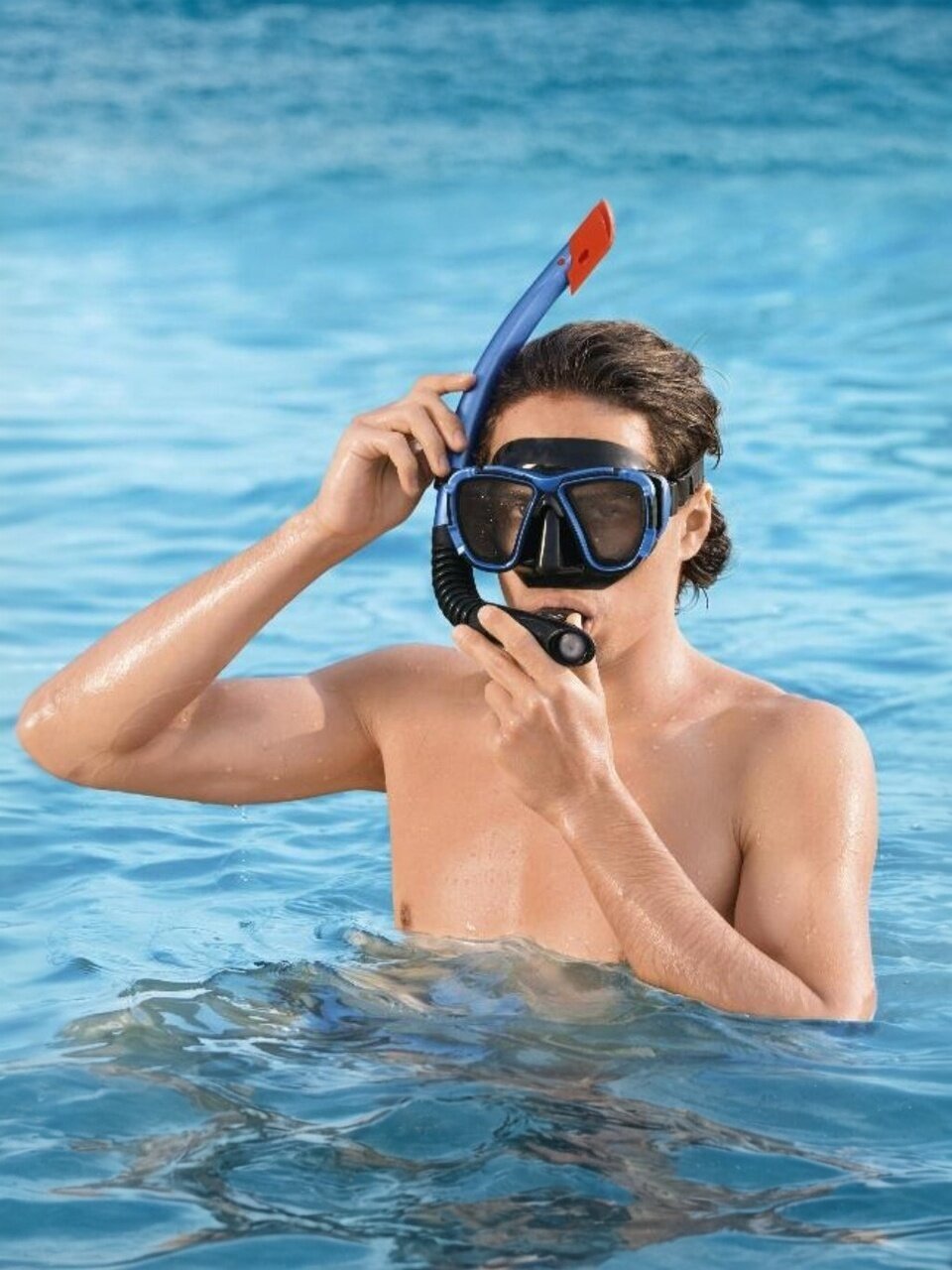 Маска для плавания - позволит Вам или Вашему ребёнку любоваться подводным миром и надежно защитит глаза во время купания. Обеспечивает надёжное прилегание и препятствует попаданию воды внутрь маски. Широкий эластичный ремешок надёжно фиксирует маску на голове.