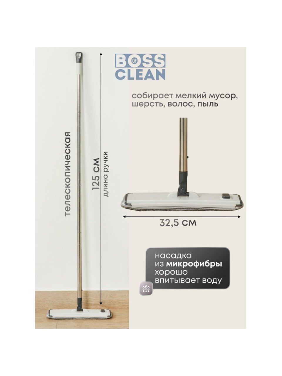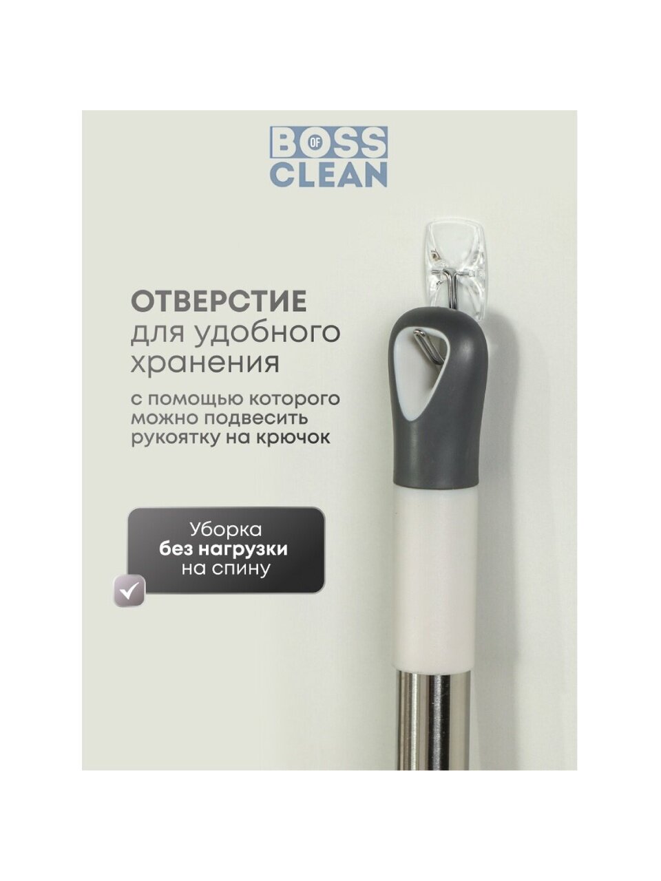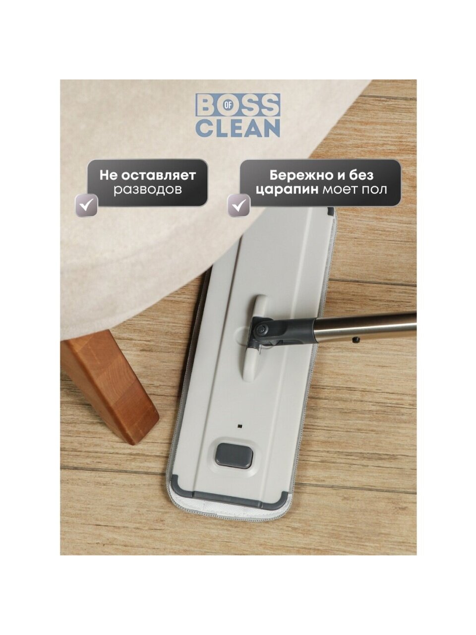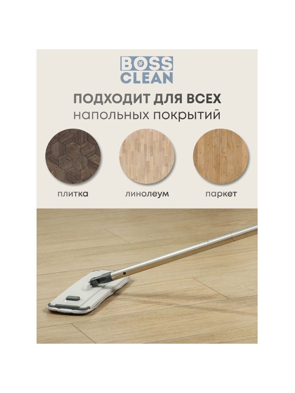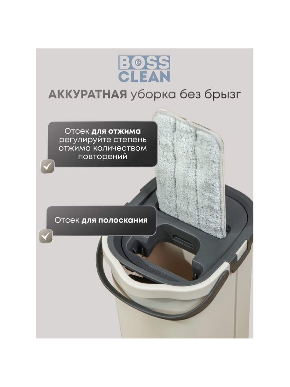 С набором для уборки Bossclean Вы сможете помыть полы быстро и качественно. Удобная система отжима позволит Вам избежать контакта с водой и моющими средствами, сохранив красоту маникюра и гладкость кожи рук. С таким набором влажная уборка станет идеальной, а полы будут чистыми без разводов и ворсинок.