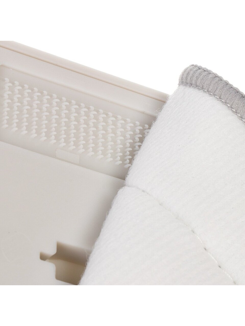 - Насадка выполнена из впитывающей микрофибры, эффективно справляется с загрязнениями и не оставляет разводов.