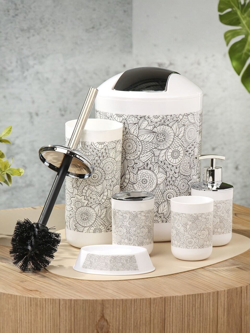 Откройте для себя стиль и функциональность с набором для ванной "Ажур" из 6 предметов. Этот изысканный комплект станет неотъемлемой частью любой ванной комнаты, добавляя элегантность и практичность. Вдохновленный современными трендами, он выполнен в универсальном сером цвете, который легко вписывается в любой интерьер. Пластиковый материал обеспечивает долговечность и легкость ухода, что делает набор идеальным выбором для повседневного использования.