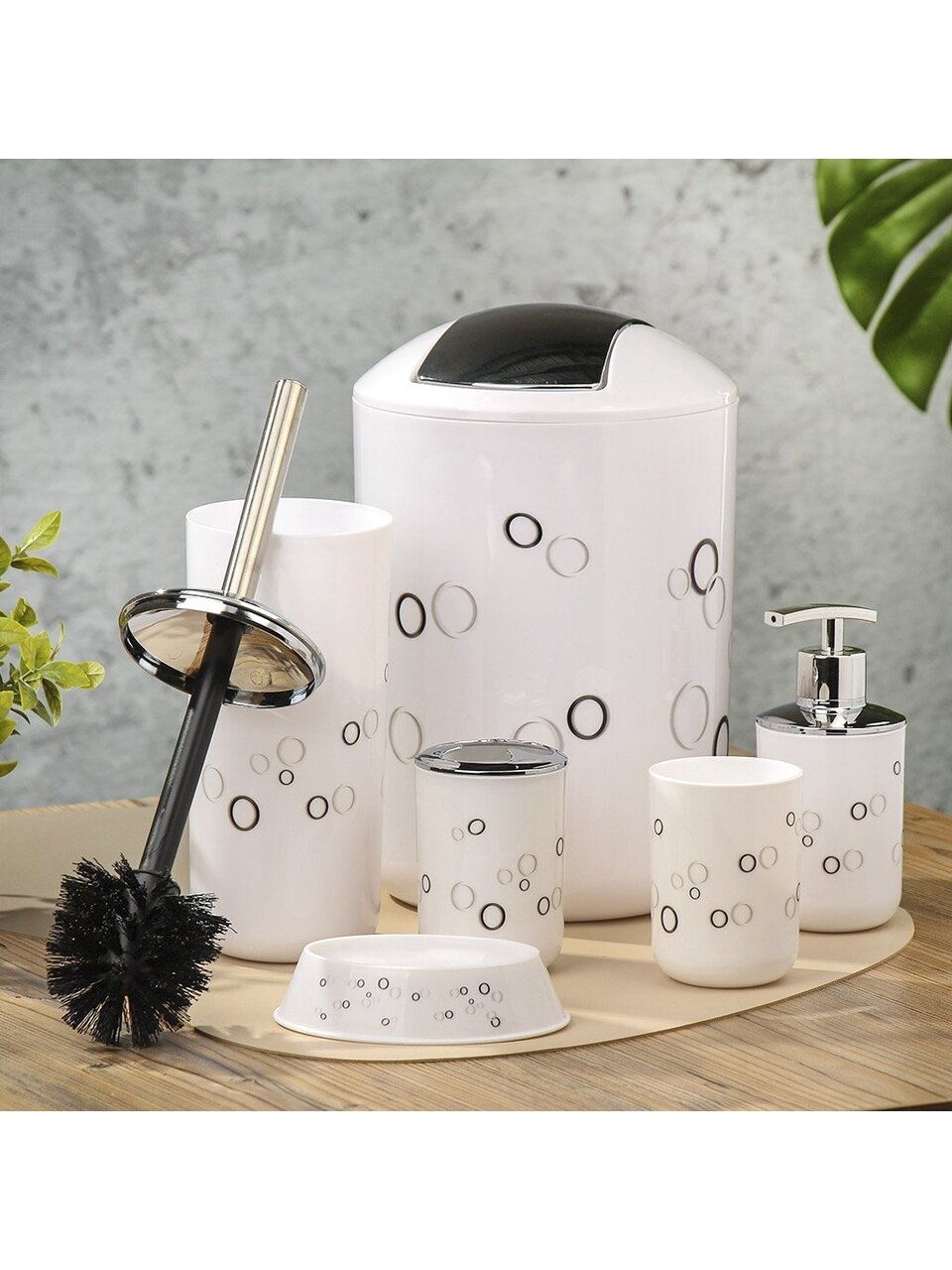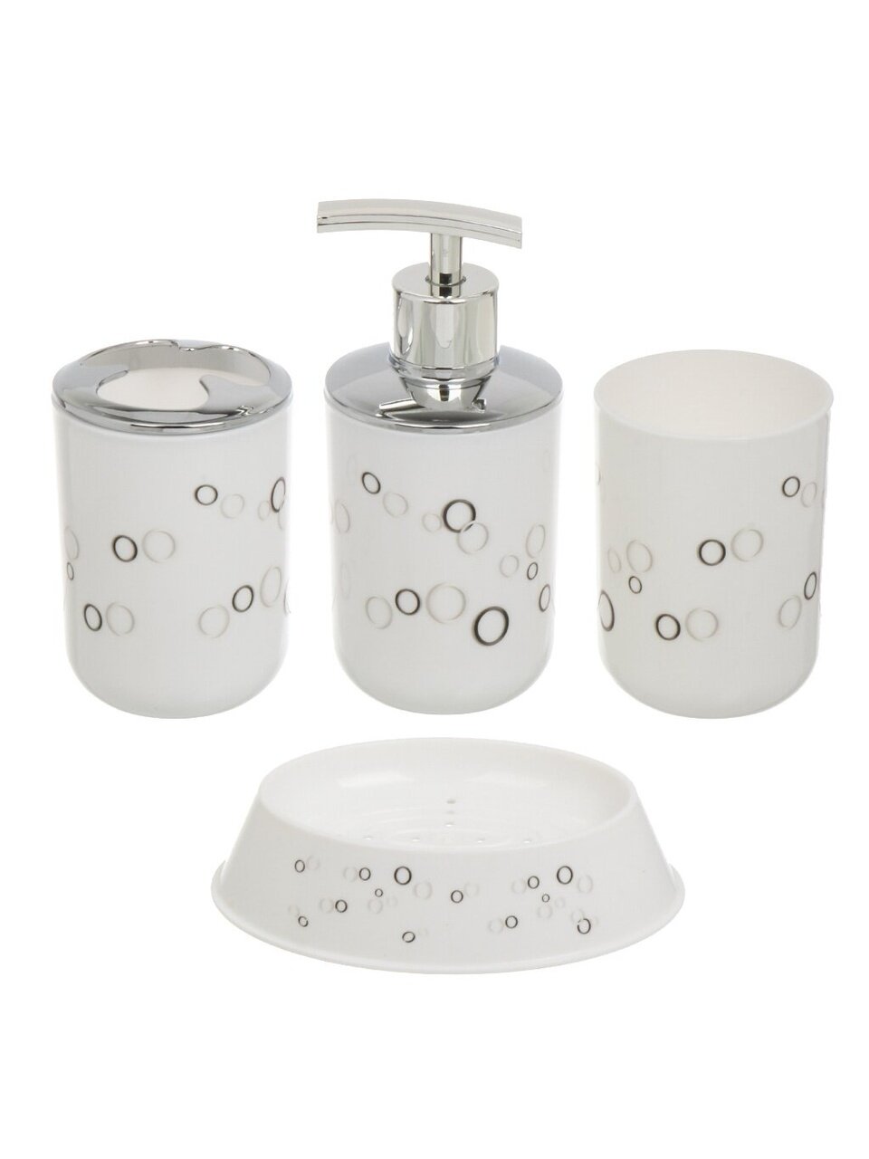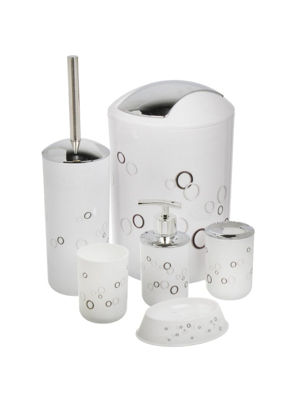 Вы можете приобрести «Набор для ванной 6 предметов, Серебро на белом, пластик, стакан, подставка для зубных щеток, дозатор для мыла, A350062» и другие товары в нашем интернет-магазине в Краснодаре по низким ценам и с бесплатным самовывозом.