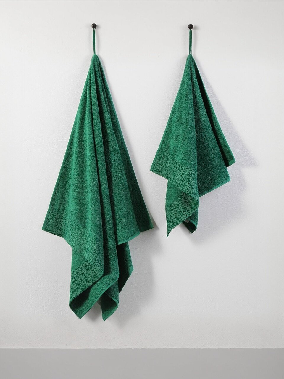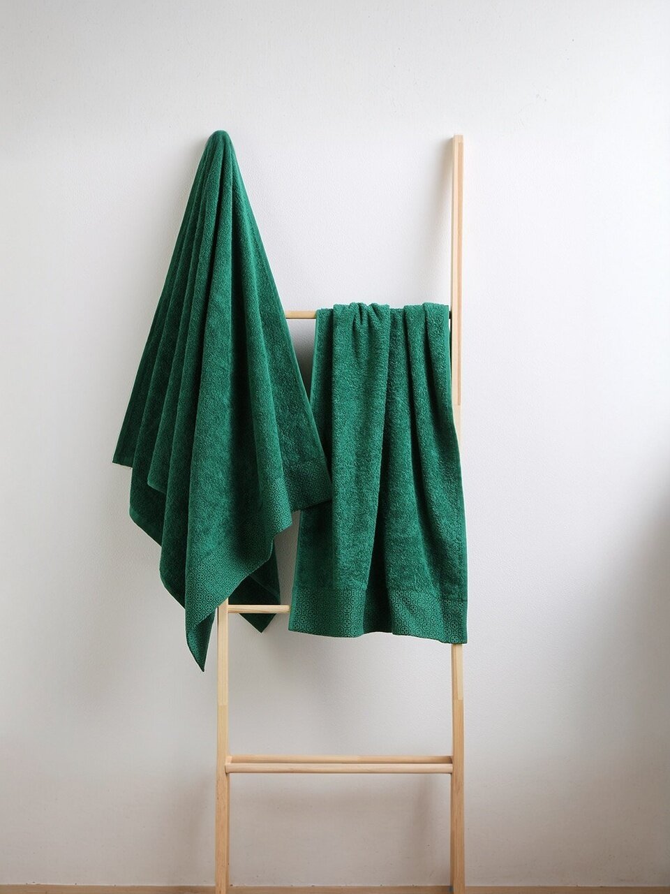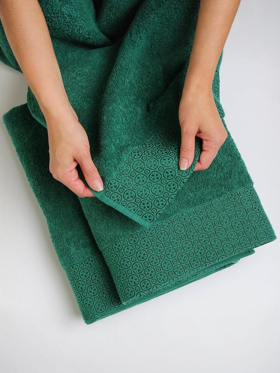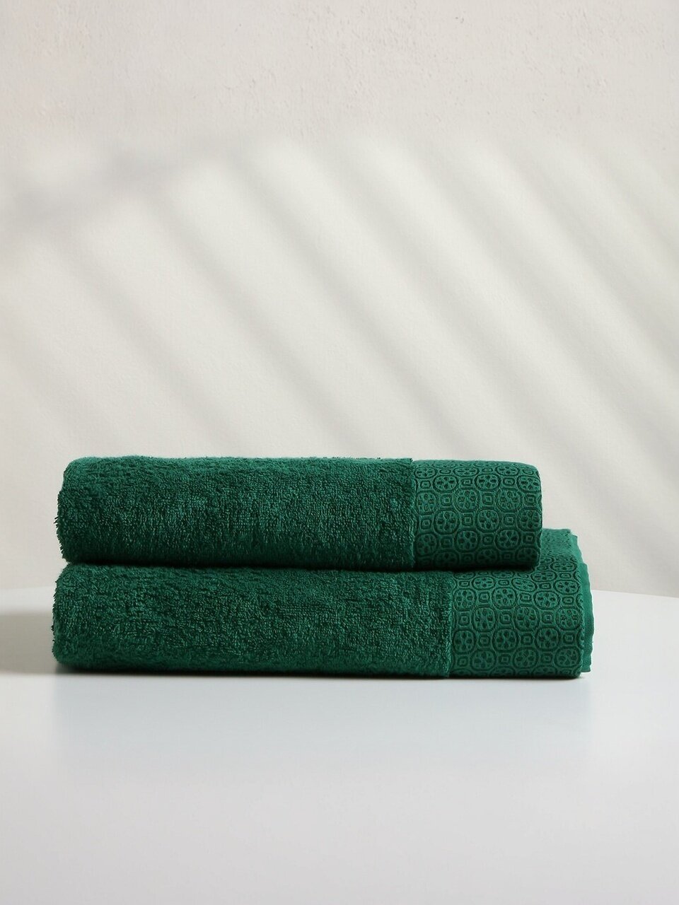 Погрузитесь в атмосферу уюта и комфорта с набором полотенец Silvano Мореска в насыщенном темно-зеленом цвете. Набор включает два полотенца универсальных размеров: 50х90 см и 70х140 см, что идеально подходит для ежедневного использования в ванной комнате. Благодаря 100% натуральному хлопку полотенца отличаются высокой впитывающей способностью и мягкостью, обеспечивая приятные ощущения после душа или ванны. Плотность ткани 420 г/м² гарантирует прочность и долговечность, даже при регулярных стирках.