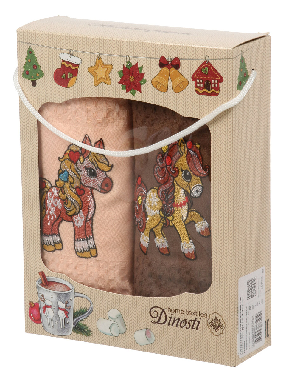Набор кухонных полотенец Dinosti «Имбирный пряник», 2 шт., 33х60 см — стильный подарок и практичное решение для кухни, дачи или дома.