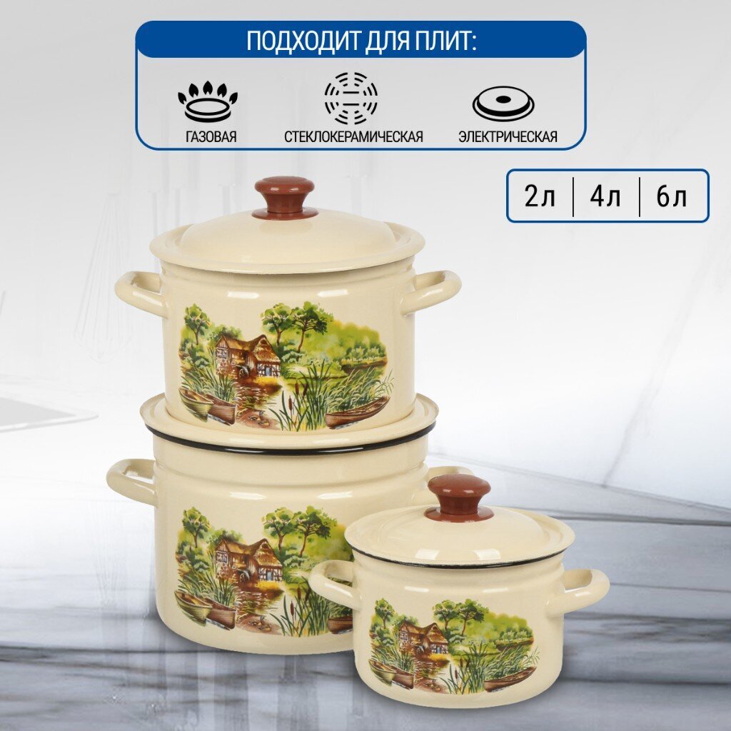 Вы можете приобрести «Набор посуды эмалированная сталь, 6 предметов, 2, 4, 6 л, Керченский металлургический завод, Лодки-1, слоновый» и другие товары в нашем интернет-магазине в Шахтах по низким ценам и с бесплатным самовывозом.