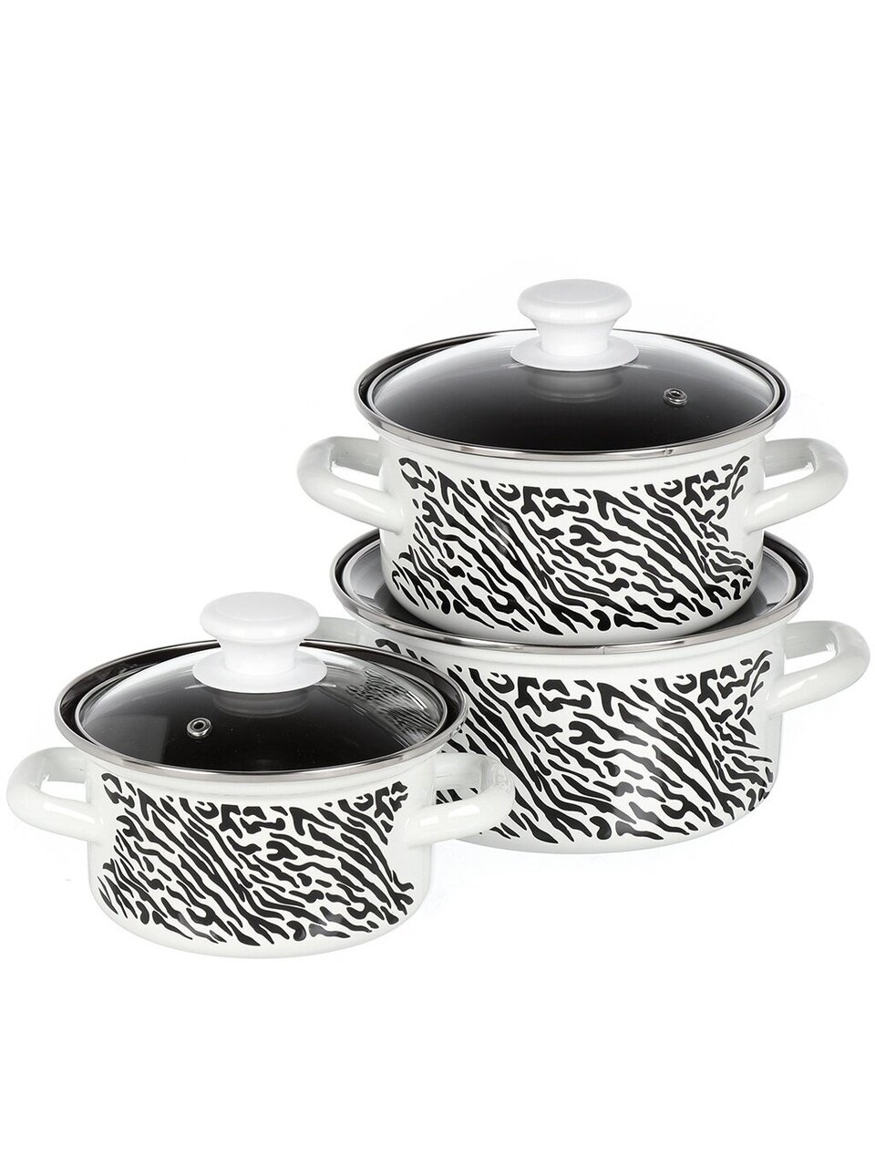 Набор посуды из эмалированной стали «Зебра-1-Экстра» — это продуманный вариант для тех, кто ищет, какую посуду купить недорого для дачи или дома. Эмалированная сталь устойчива к коррозии, не впитывает запахи и проста в уходе. В отличие от алюминиевых аналогов, такие кастрюли не окисляются и сохраняют вкус блюд. Комплект из 3-х предметов позволяет выбрать оптимальный объем для разных рецептов: от каши на завтрак до супа на всю семью.