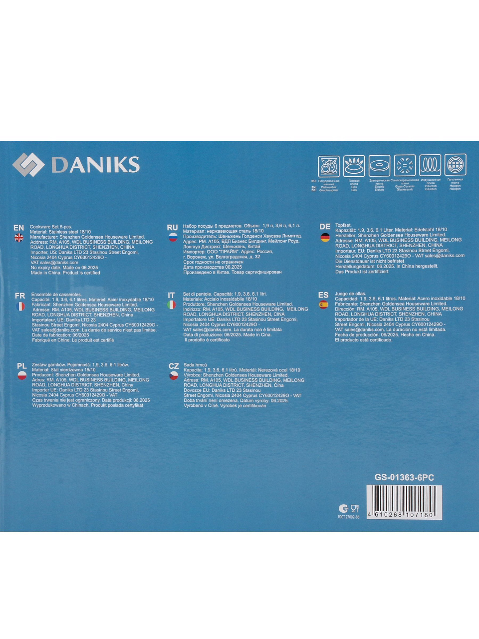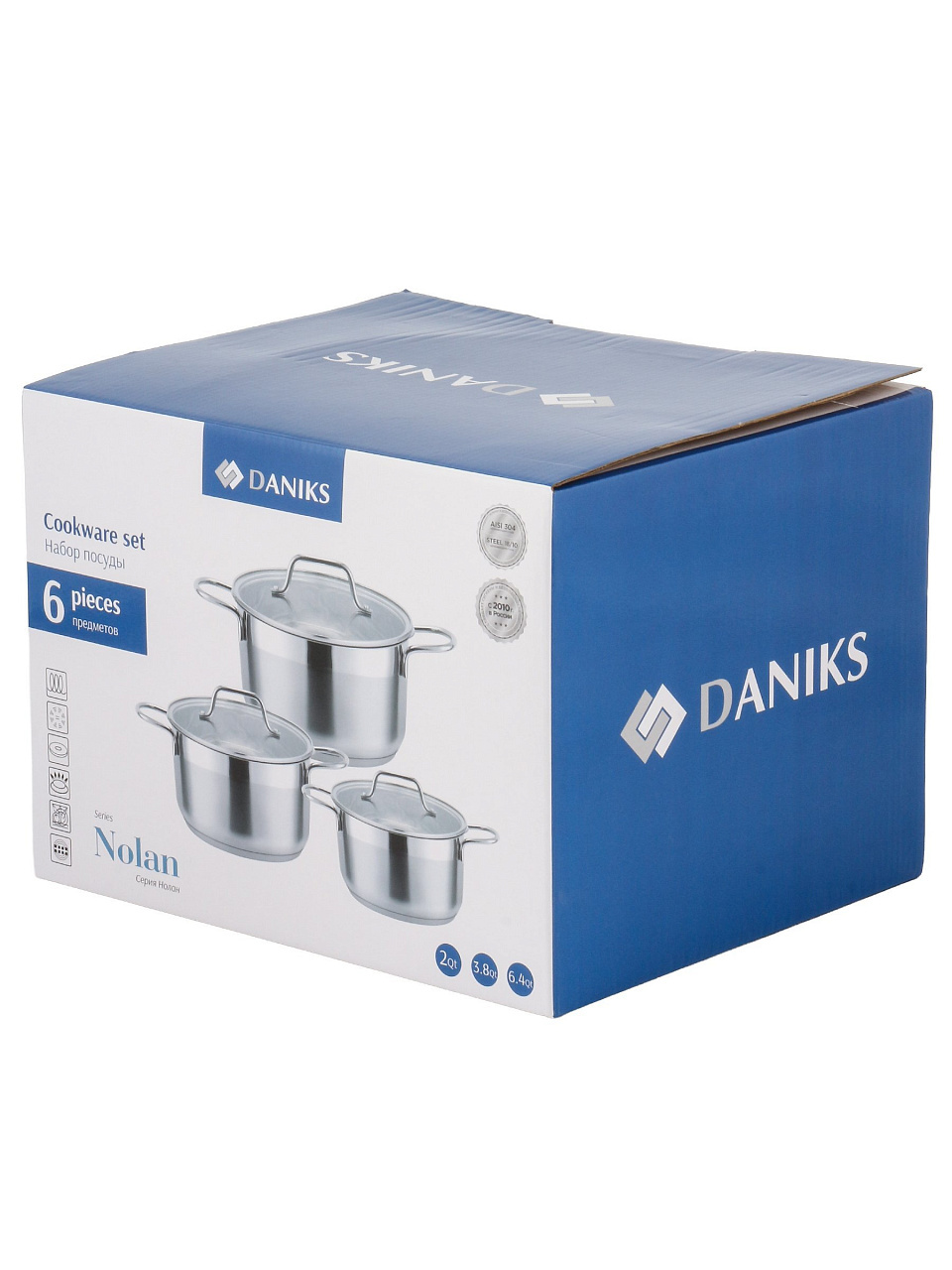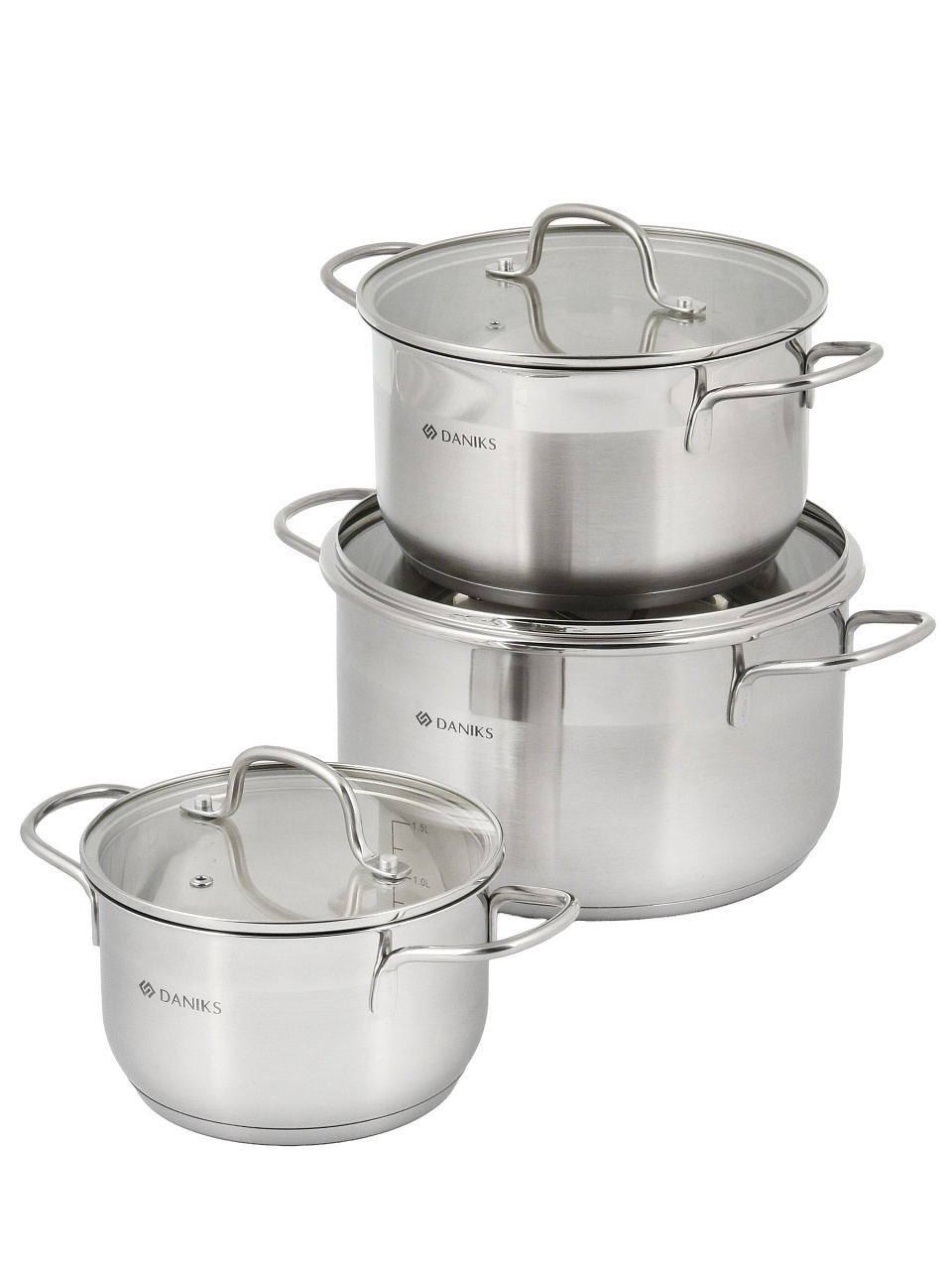Набор посуды Daniks Нолан: 6 предметов из нержавеющей стали для индукции — идеальное решение для кухни дома, дачи и подарка. Кастрюли 1.9, 3.6, 6.1 л, долговечность и универсальность.