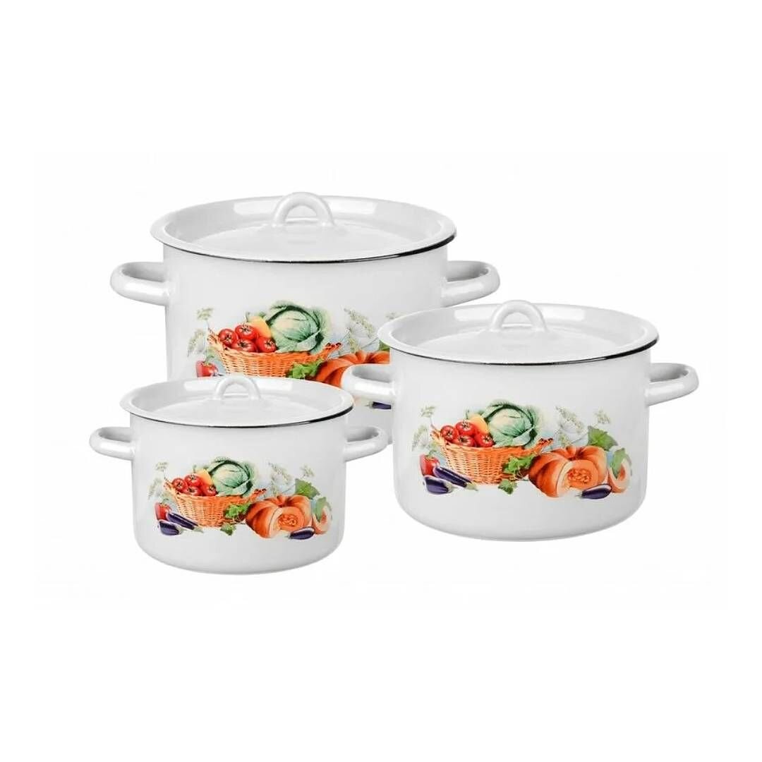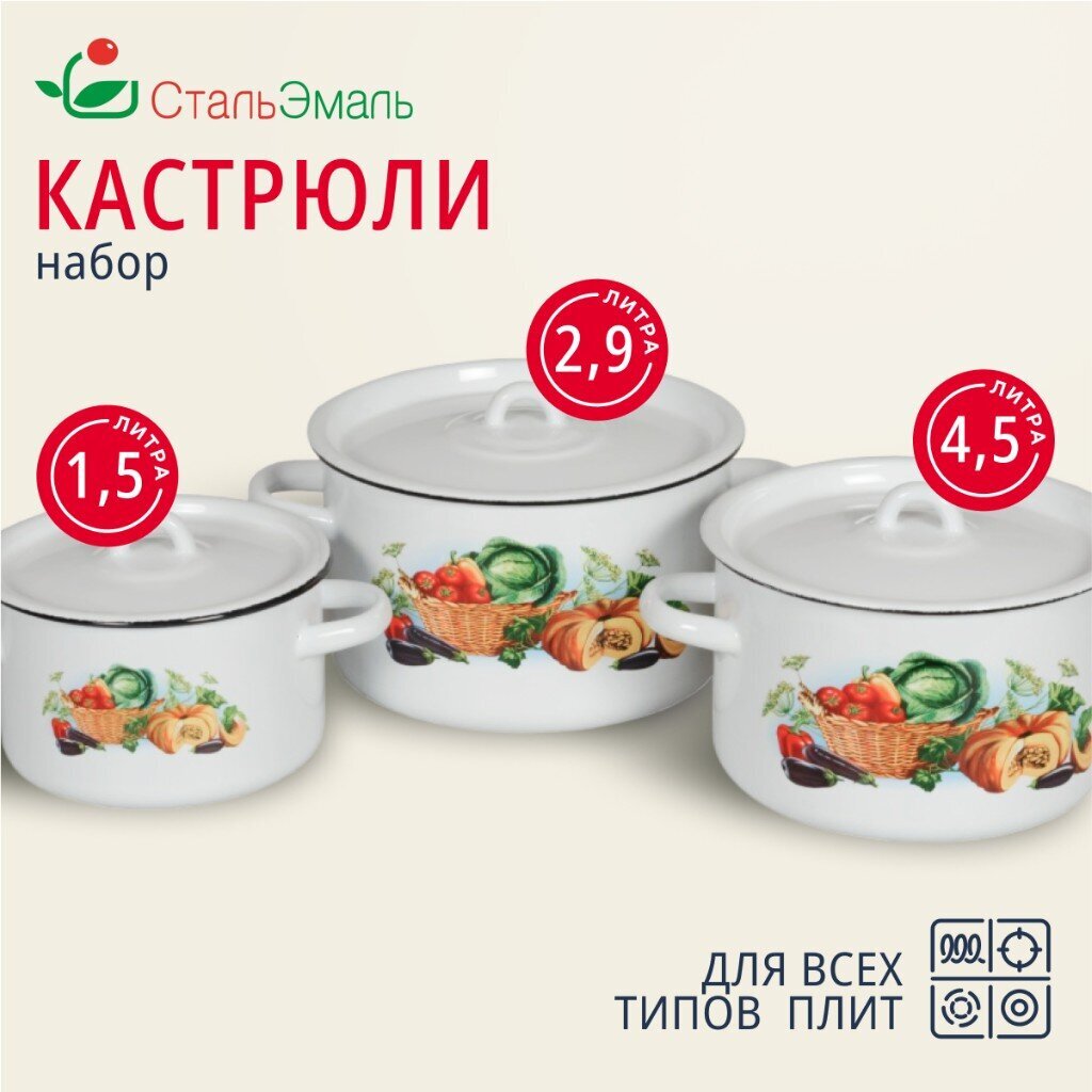 Вы можете приобрести «Набор посуды эмалированная сталь, 3 предмета, кастрюли 1.5,2.9,4.5 л, индукция, СтальЭмаль, Урожай, 1с33» и другие товары в нашем интернет-магазине в Ельце по низким ценам и с бесплатным самовывозом.