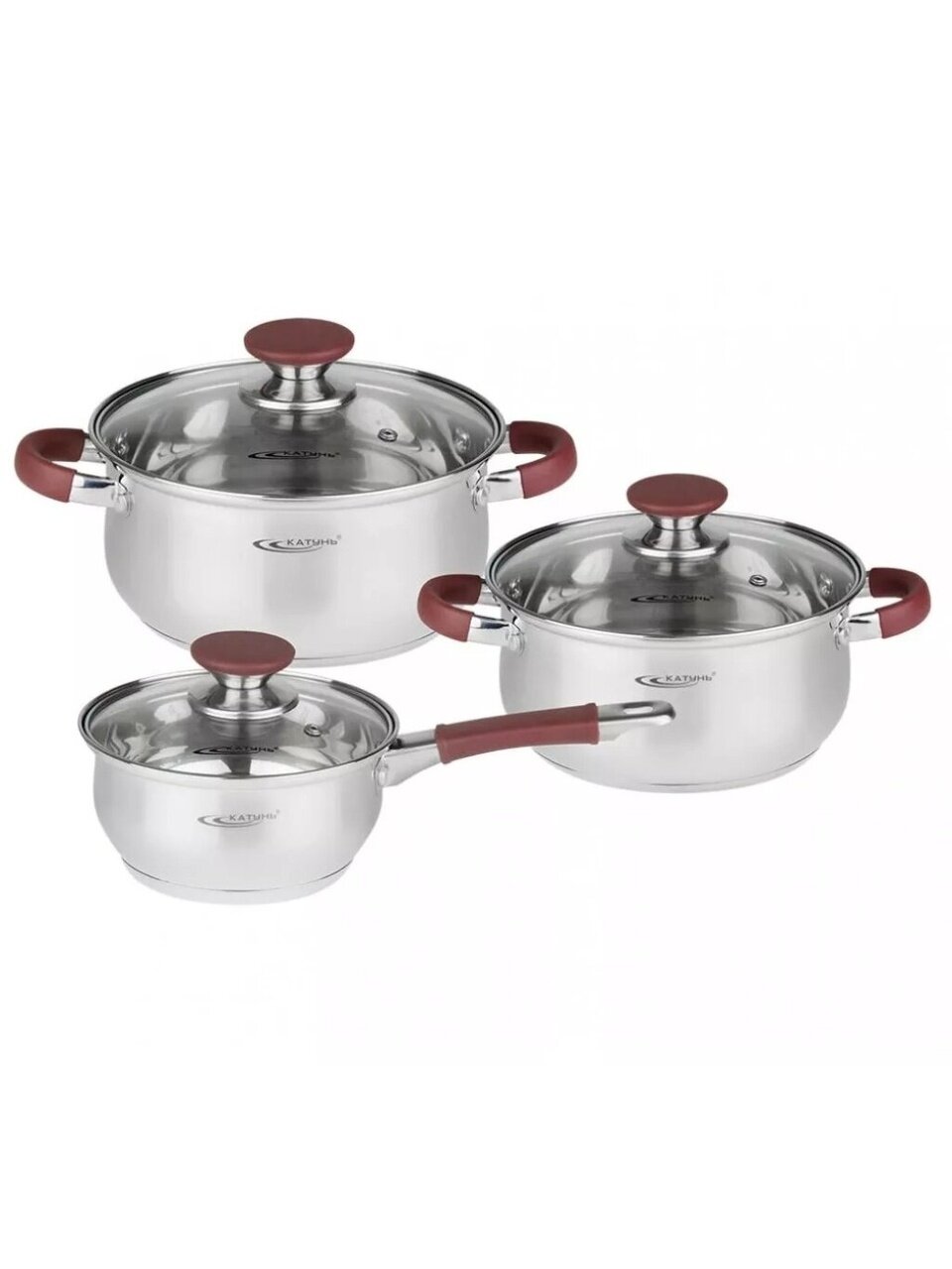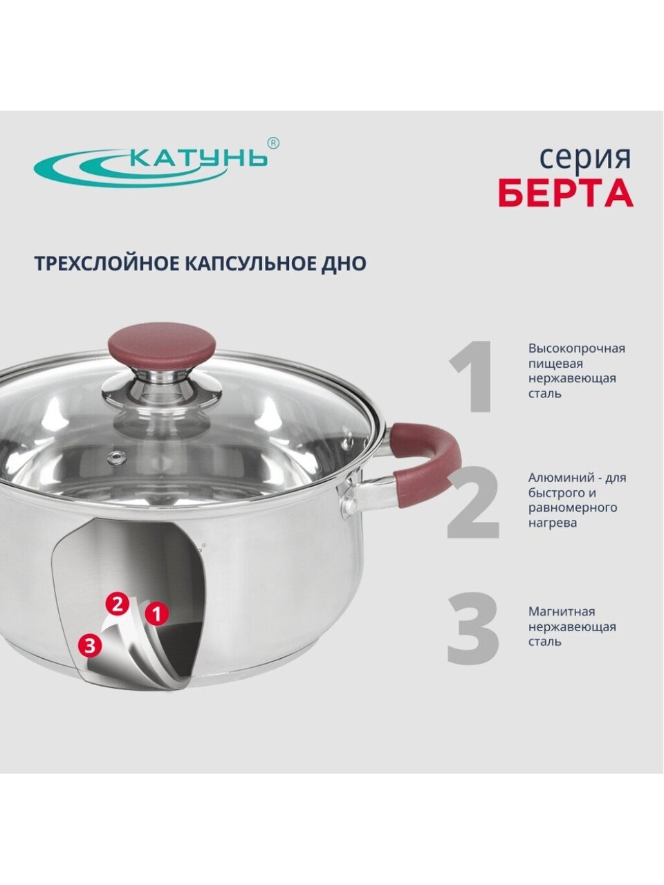 Набор посуды из нержавеющей стали Катунь Берта: 6 предметов для индукции и всех типов плит — идеальный выбор для дома и дачи, выгодная цена