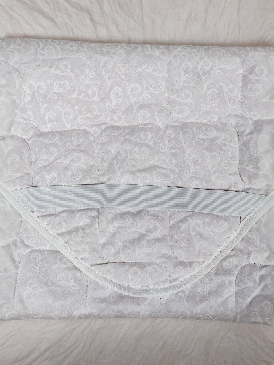 С помошью резинки намотрасник крепится к матрасу, надежно фиксируя.