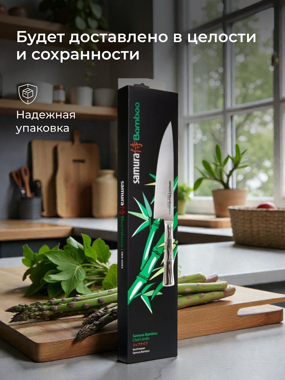 Вы можете приобрести «Нож кухонный Samura, Bamboo, шеф-нож, нержавеющая сталь, 20 см, рукоятка сталь, SBA-0085/K» и другие товары в нашем интернет-магазине в Таганроге по низким ценам и с бесплатным самовывозом.