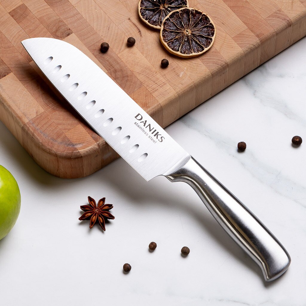 Вы можете приобрести «Нож кухонный Daniks, Ферра, сантоку, нержавеющая сталь, 20 см, рукоятка сталь, YW-A042-SN» и другие товары в нашем интернет-магазине в Твери по низким ценам и с бесплатным самовывозом.