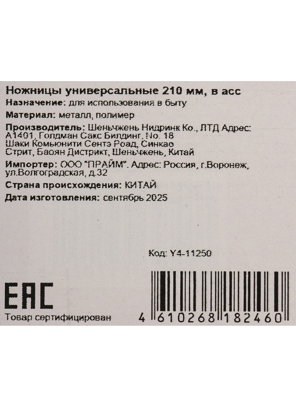 Вы можете приобрести «Ножницы универсальные, 210 мм, в ассортименте, Y4-11250» и другие товары в нашем интернет-магазине в Таганроге по низким ценам и с бесплатным самовывозом.
