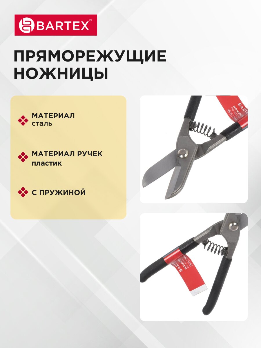 Вы можете приобрести «Ножницы по металлу пряморежущие, 200 мм, с пружиной, черные ручки, Bartex» и другие товары в нашем интернет-магазине в Астрахани по низким ценам и с бесплатным самовывозом.