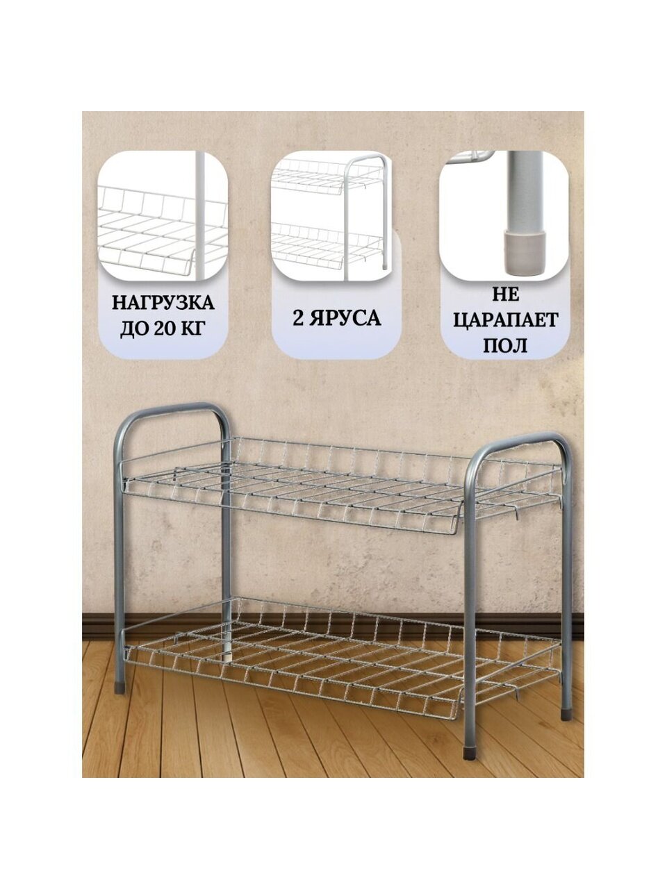 Обувная полка из металла - это удобное и практичное решение для хранения обуви в доме, офисе или любом другом помещении. Изготовлена из качественного металла, что обеспечивает ей долговечность и надежность.