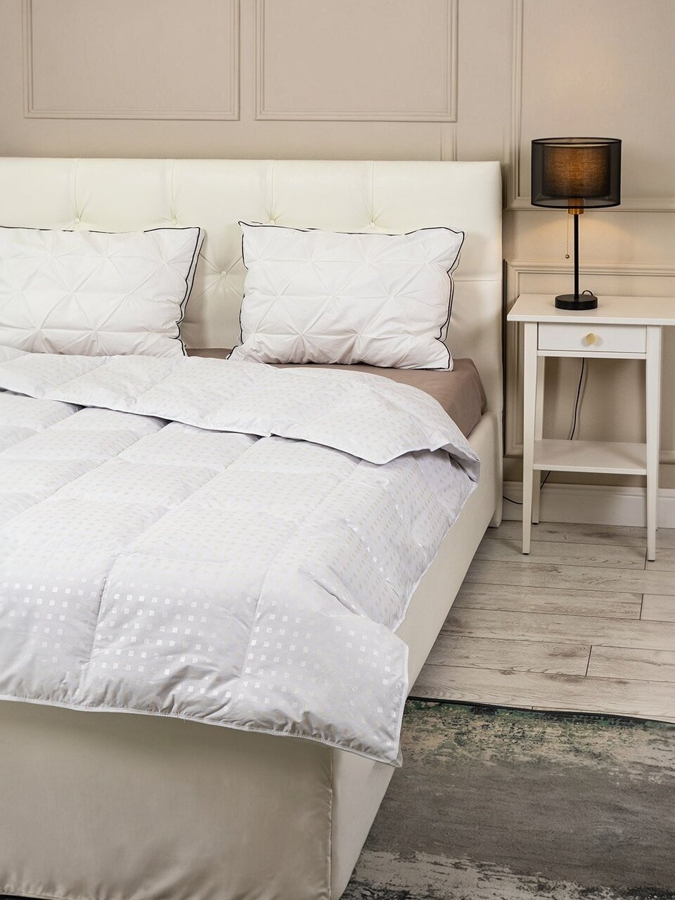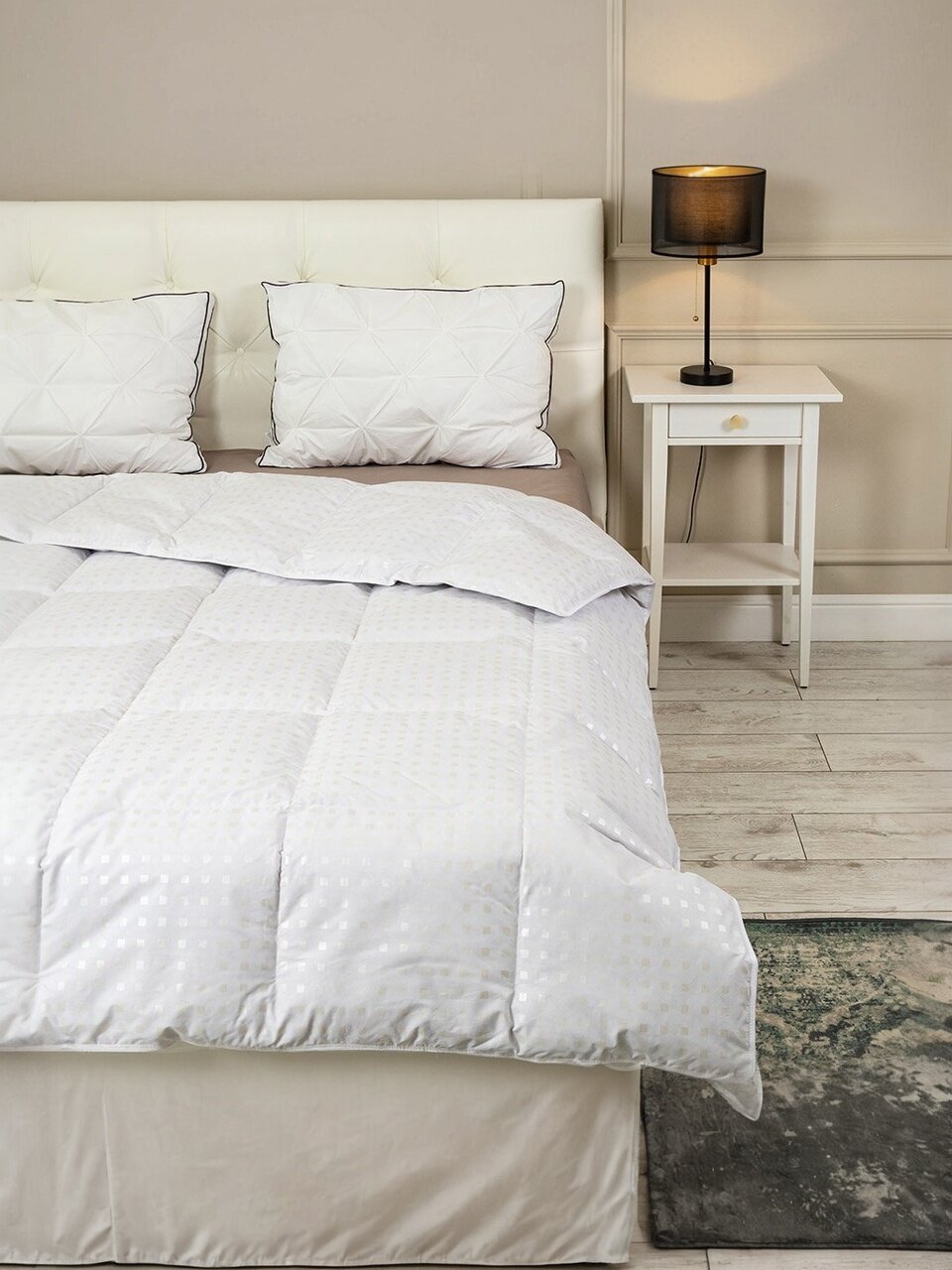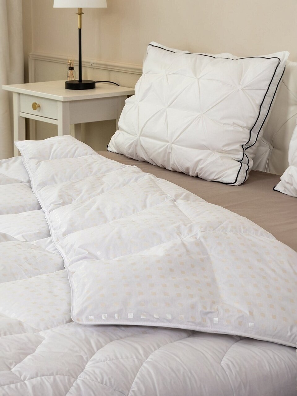 Одеяло евро Формула не требует стирки — достаточно регулярного проветривания, чтобы сохранить свежесть. Оно подходит для аллергиков, так как натуральный пух и перо проходят специальную обработку. Если вы ищете, какое одеяло лучше для подарка или дачи, обратите внимание на универсальный белый цвет и классический стиль с узором. В отличие от тяжелых шерстяных моделей, это одеяло средней толщины и веса (1,4 кг) легко справляется с задачей сохранения тепла и уюта.