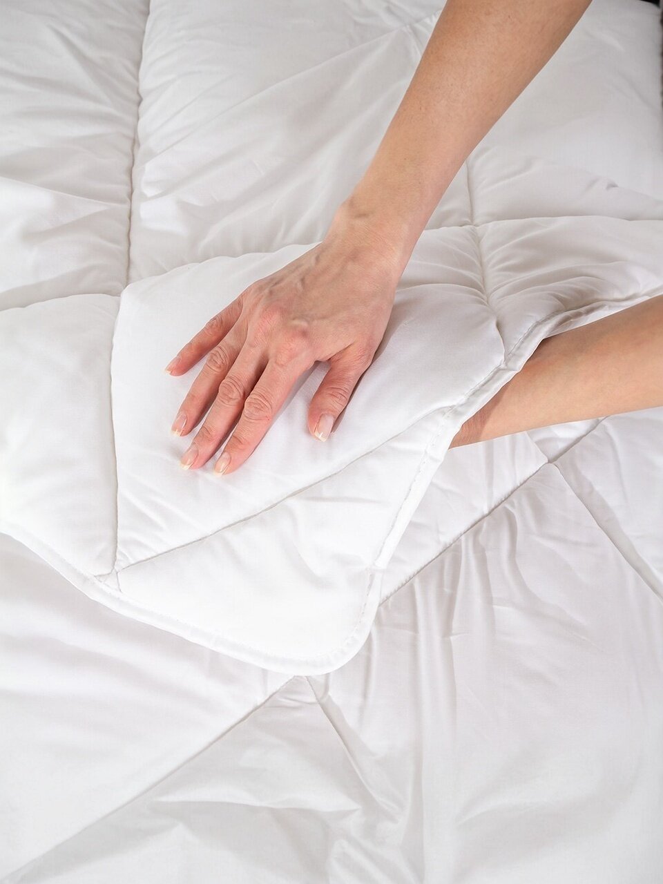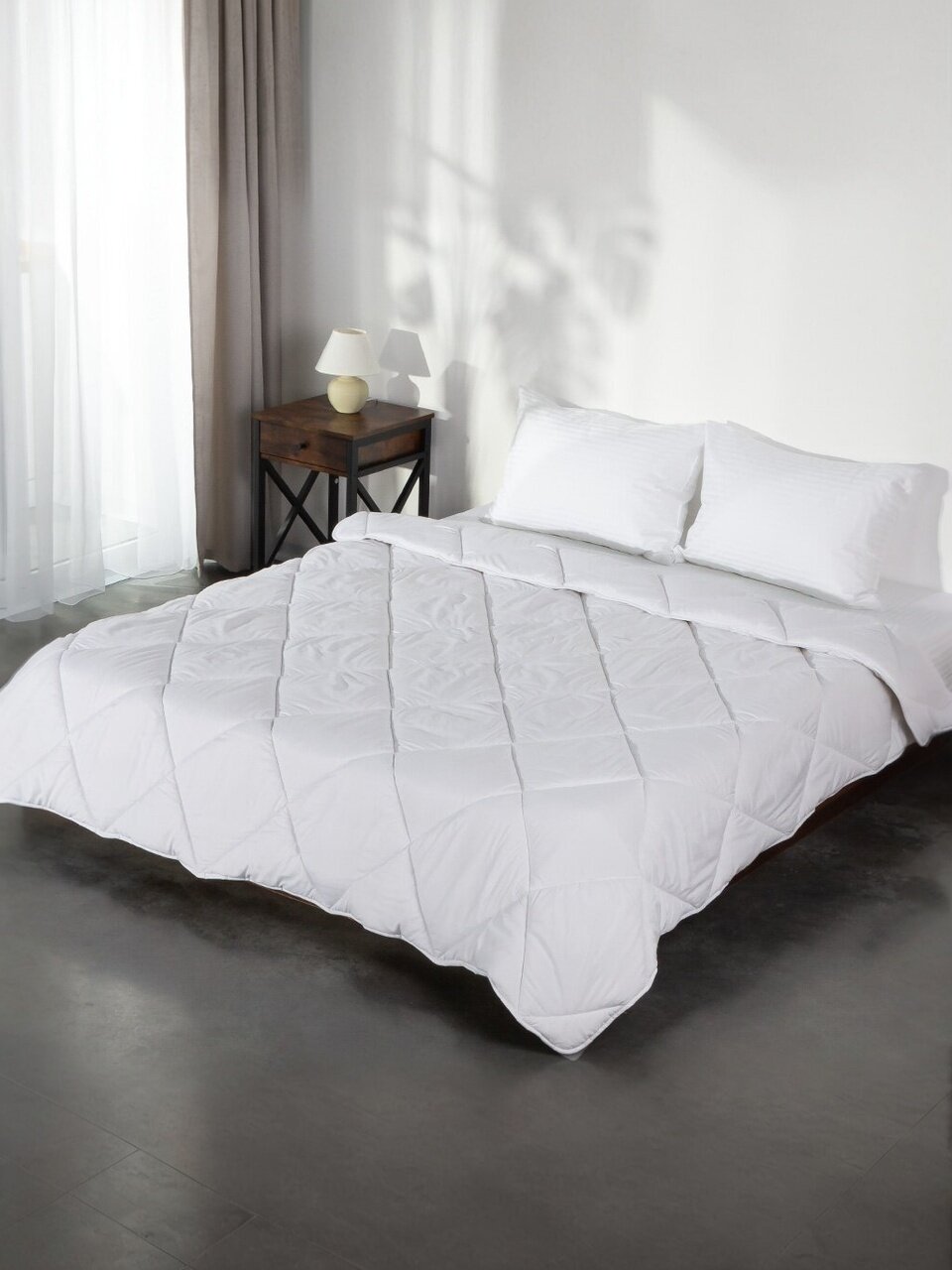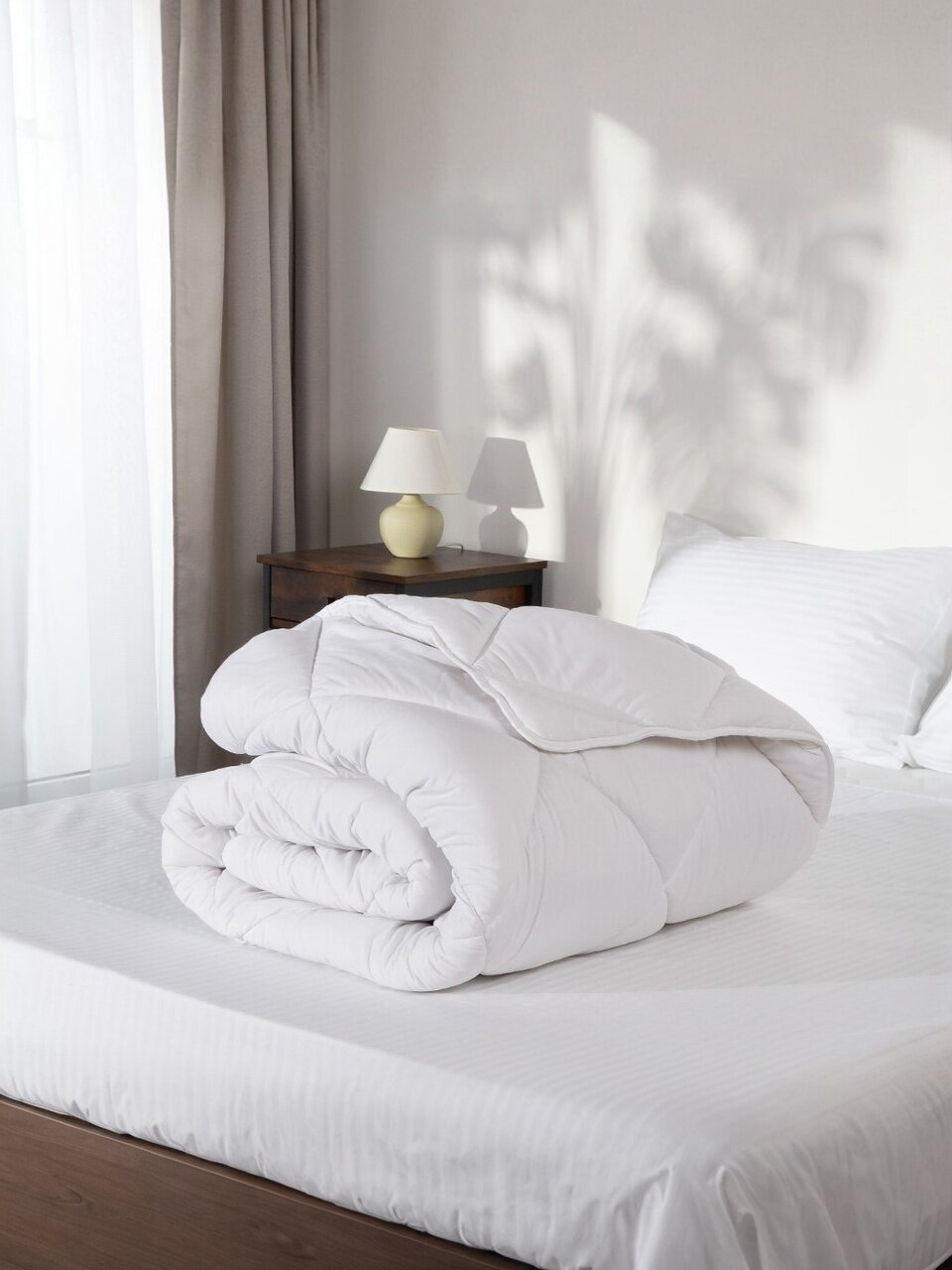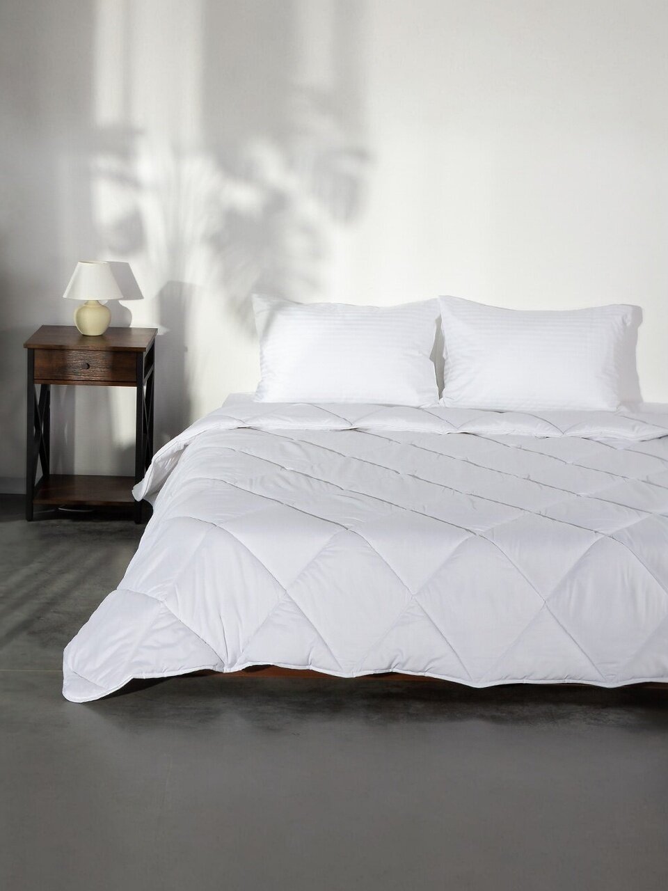 В отличие от аналогов с натуральным пухом, это одеяло не требует сложного ухода и не боится влаги. Если вы ищете, какое одеяло лучше выбрать для дачи или квартиры — обратите внимание на всесезонную универсальность: оно сохраняет тепло зимой, но не перегревает летом. Подходит ли для подарка? Да, благодаря лаконичному белому дизайну и современному стилю — отличный вариант для любого интерьера. Как использовать одеяло: просто застелите его в пододеяльник, уход минимален — достаточно периодически стирать при 30°С.