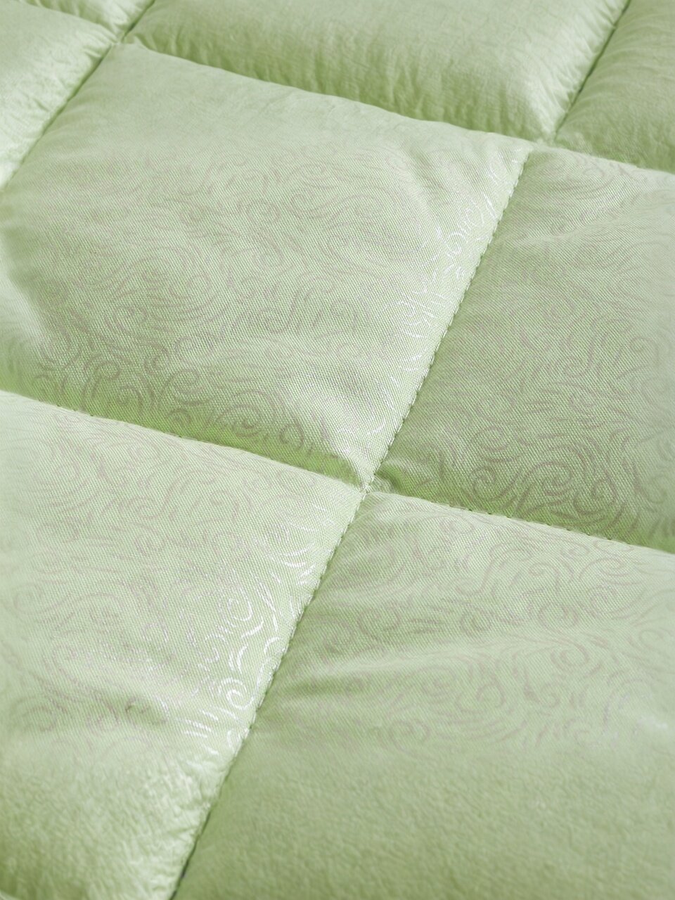 Если вы спрашиваете, какое одеяло лучше выбрать для жаркого сезона или для дачи, обратите внимание на облегченную модель с плотностью 180 г/м2: она практически не ощущается на теле, но создает уют. В отличие от классических тяжелых одеял, этот вариант не сминается и не теряет форму после стирки. Чехол из 100% полиэстера прочен и приятен на ощупь, а современный зеленый дизайн с узором впишется в любой интерьер.