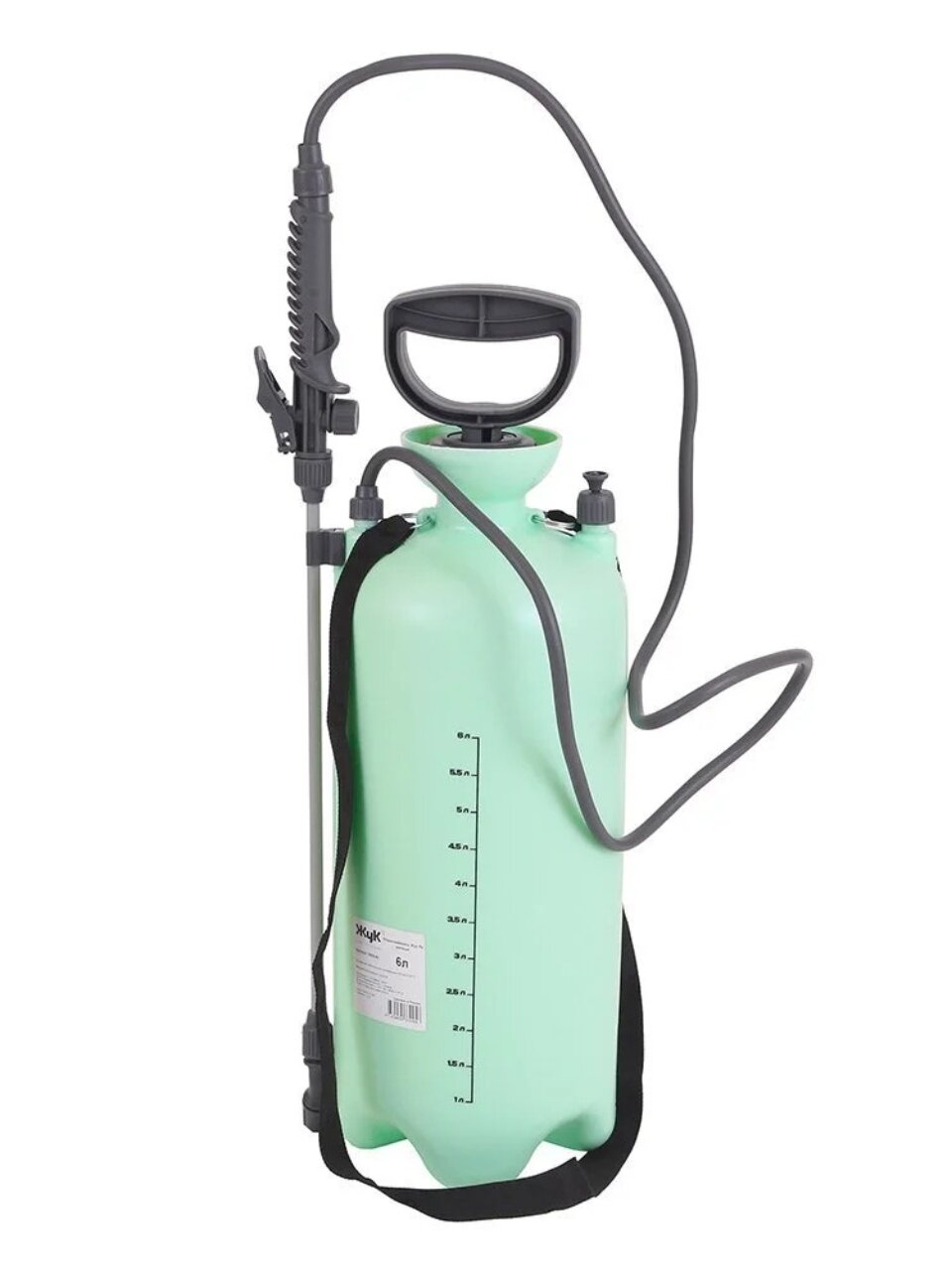 - Объём 6 литров, прочный пластик, штанга 600 мм — подходит для обработки больших площадей.