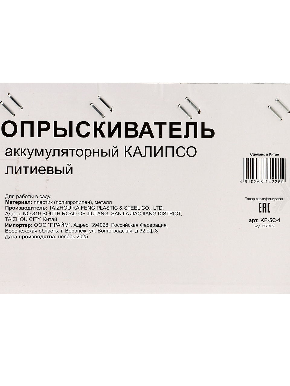 Вы можете приобрести «Опрыскиватель садовый аккумуляторный, Kalipso, 5 л, Li-ion, 2.5 А.ч, 3.7 В, пластик, KF-5C-1, синий» и другие товары в нашем интернет-магазине в Таганроге по низким ценам и с бесплатным самовывозом.