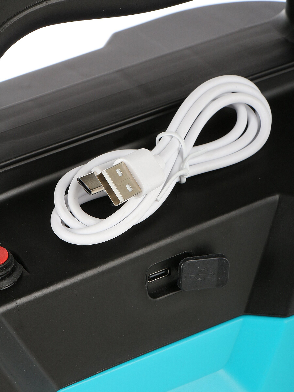 Объем бака — 8 литров, материал — прочный пластик, цвет — синий. Аккумулятор — Li-ion, емкость 2.5 А·ч, напряжение 3.7 В.