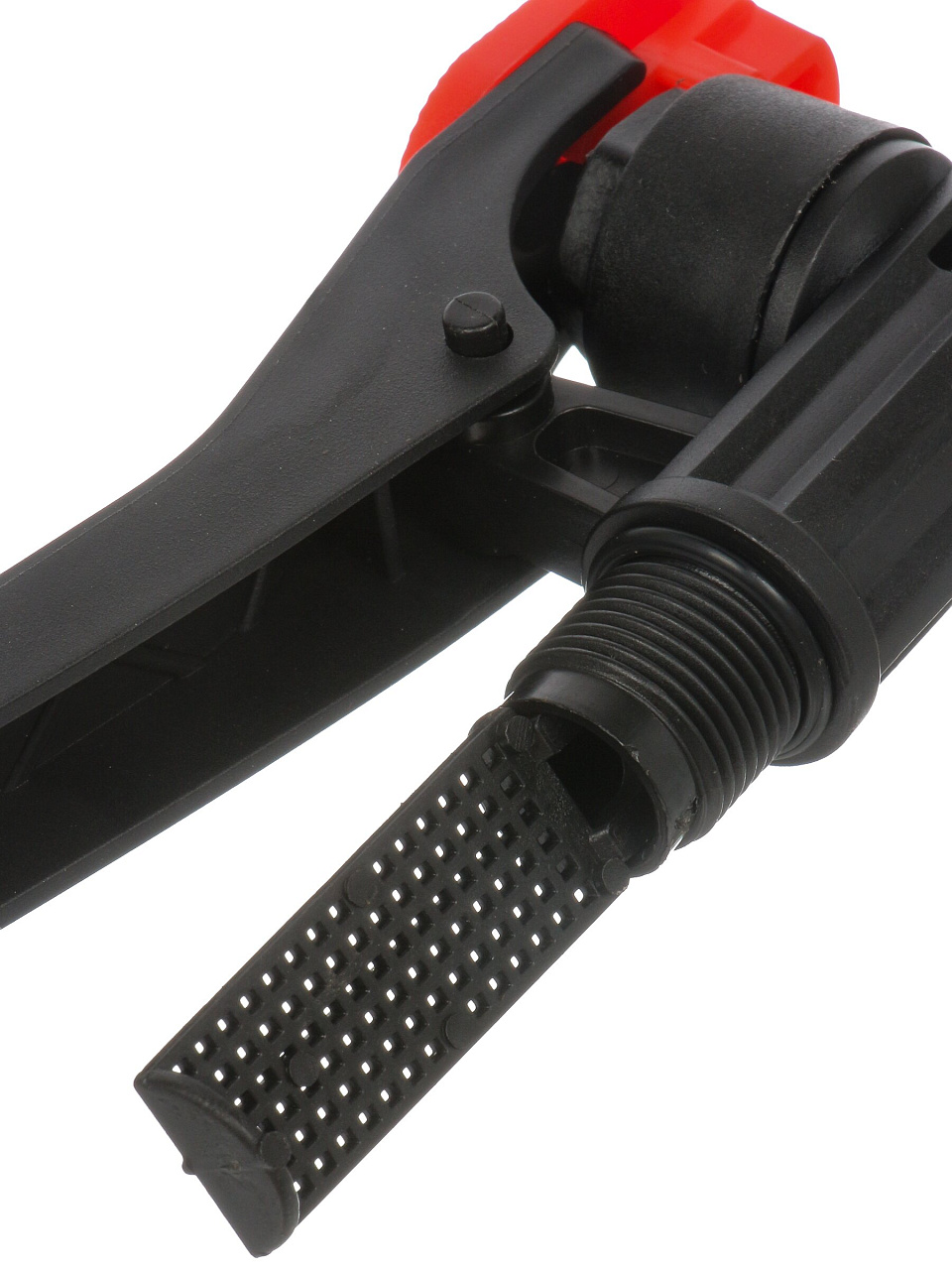 Ручка выполнена из усиленного пластика, который не трескается при нагрузке, не боится влаги и подходит для активного использования на даче или в саду.