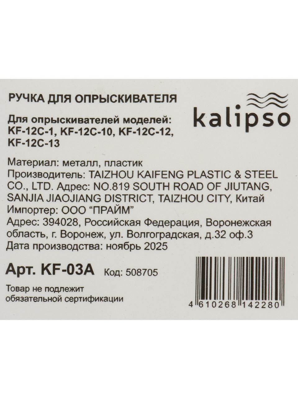 Ручка для опрыскивателя аккумуляторного Kalipso (артикул KF-03A) — это практичный аксессуар, который помогает быстро восстановить работоспособность вашего устройства без покупки нового опрыскивателя. Часто спрашивают: «Как выбрать ручку для аккумуляторного опрыскивателя?» — ориентируйтесь на объём бака (12 или 16 литров) и тип крепления. Эта модель совместима с большинством китайских и универсальных опрыскивателей, легко устанавливается своими руками.