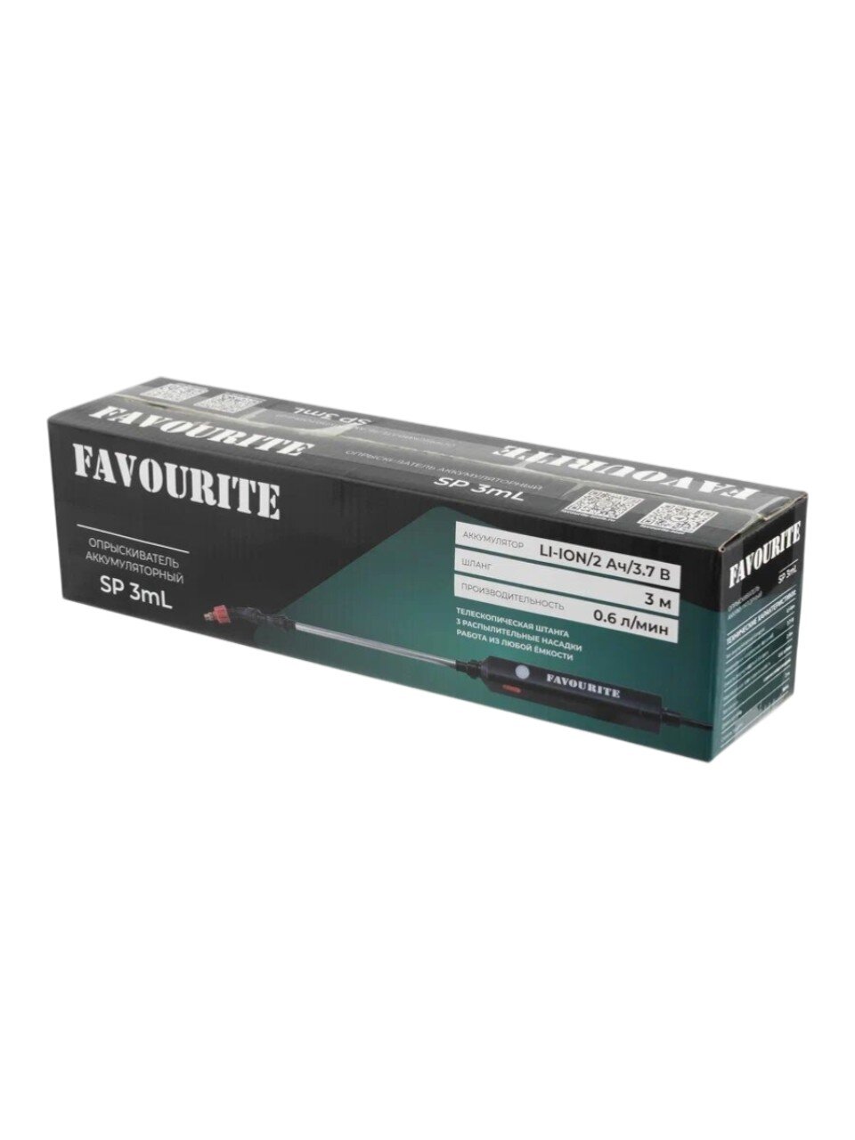 В опрыскивателе Favourite SP 3mL установлен Li-ion аккумулятор емкостью 2 А·ч, напряжение 3,7 В. Время работы зависит от интенсивности распыления и используемой жидкости, обычно хватает на несколько часов непрерывной работы без подзарядки.
