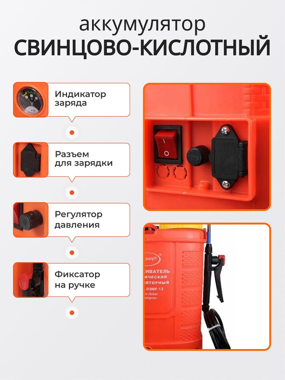 Вы можете приобрести «Опрыскиватель аккумуляторный, Умница, 12 л, свинцово-кислотный, 8 А.ч, 12 В, пластик, ОЭМР-12» и другие товары в нашем интернет-магазине в Таганроге по низким ценам и с бесплатным самовывозом.