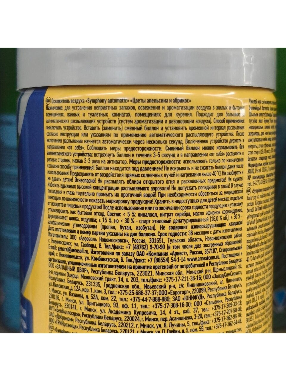 Вы можете приобрести «Освежитель воздуха Symphony, 250 мл, Цветы апельсина и абрикос, сменный, сухое распыление» и другие товары в нашем интернет-магазине в Смоленске по низким ценам и с бесплатным самовывозом.