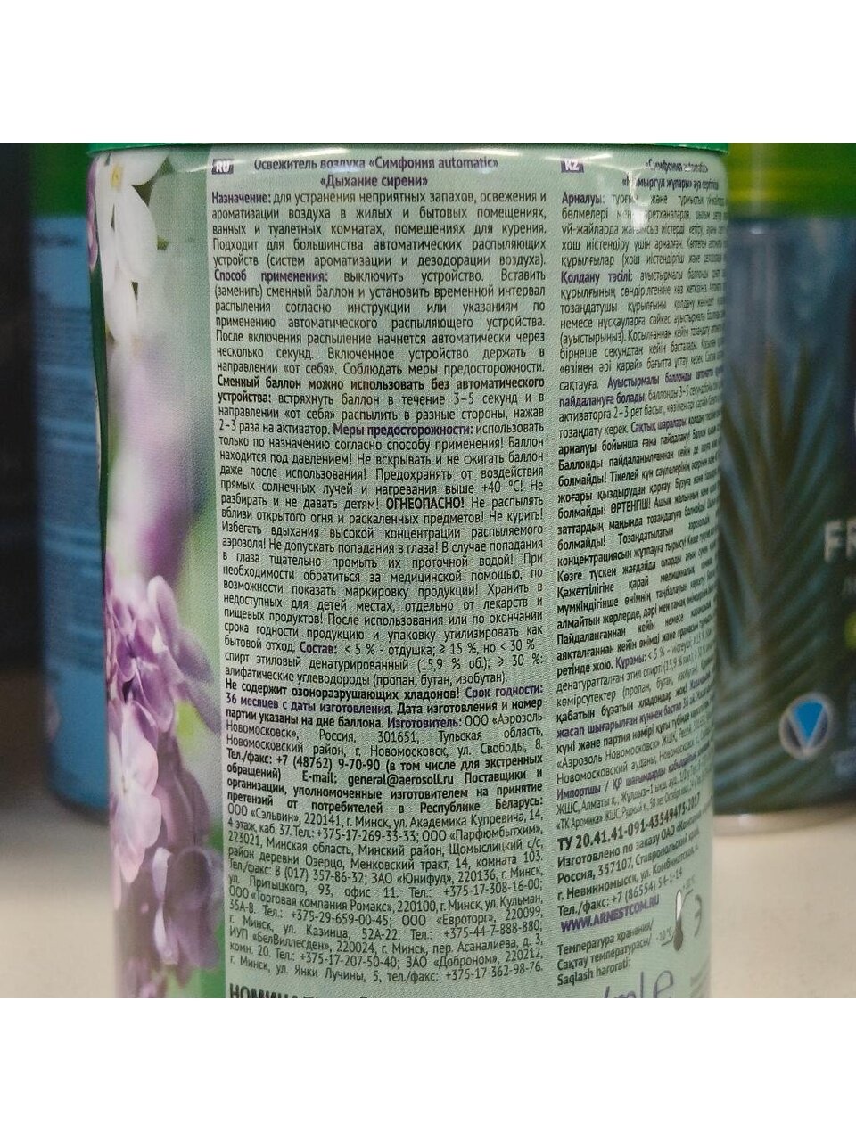 Вы можете приобрести «Освежитель воздуха Symphony, 250 мл, Дыхание сирени, 46 00104 03729 0» и другие товары в нашем интернет-магазине в Ельце по низким ценам и с бесплатным самовывозом.
