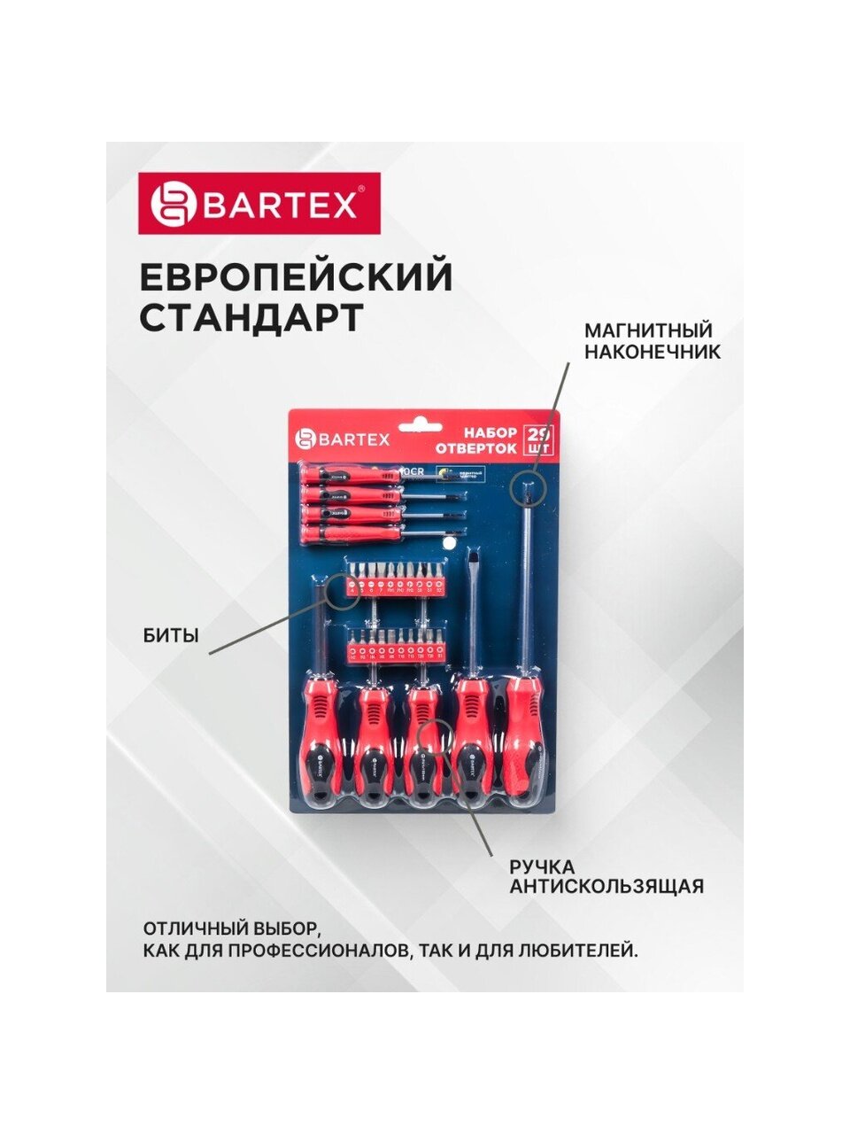 Bartex – это надежность, проверенная временем. Продукция бренда производится с учетом современных стандартов качества, что подтверждается устойчивостью к коррозии и механическим повреждениям. Набор отверток не обладает магнитными свойствами, что исключает случайное притяжение металлических стружек и обеспечивает чистоту рабочего места.