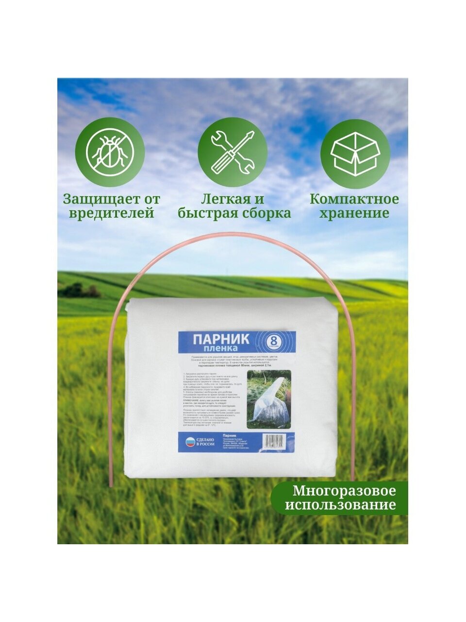 Благодаря прочному пластиковому каркасу и удобной конструкции, парник легко устанавливается и обеспечивает долговечность использования. Длина дуги в 2.5 м и диаметр трубы 16 мм делают его устойчивым к внешним воздействиям, а клипсы надежно фиксируют пленку, предотвращая ее смещение.
