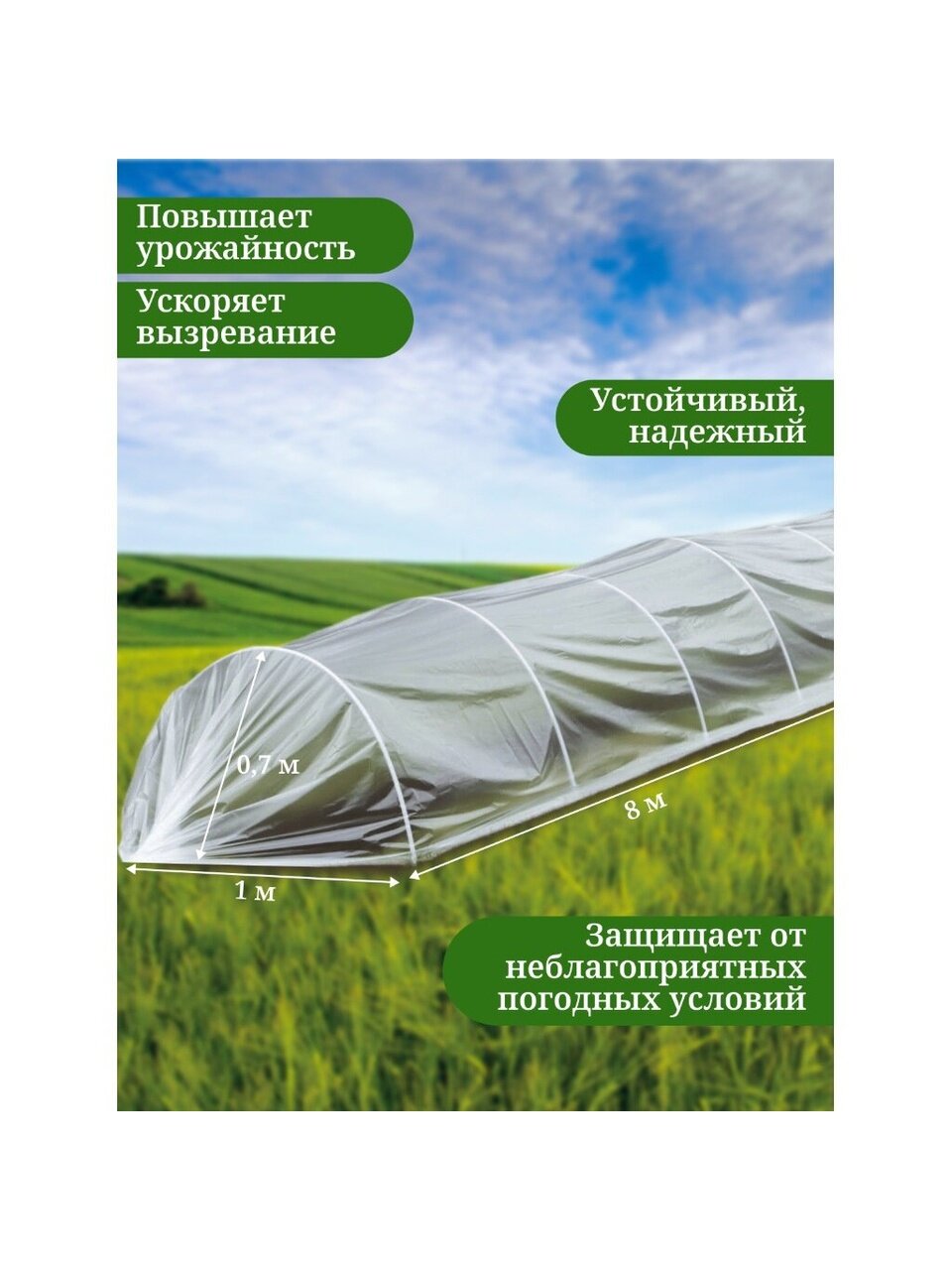 Откройте для себя идеальное решение для вашего огорода - парник 1х8х0.7 м, который обеспечит вашим растениям надежную защиту и оптимальные условия для роста. Этот парник, созданный из прочного полиэтилена с толщиной пленки 80 мкм, станет незаменимым помощником для выращивания томатов, перцев и рассады.