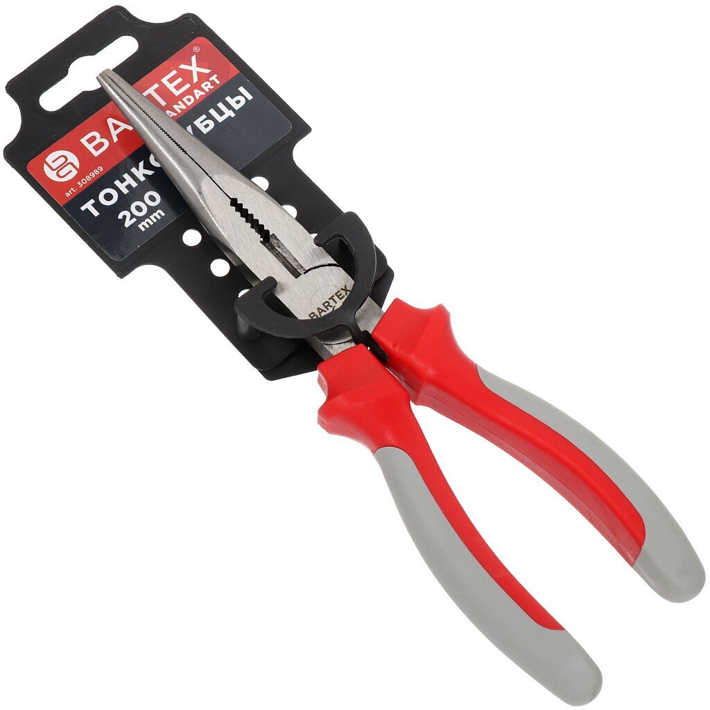 Тонкогубцы – это разновидность пассатиж с длинными и зауженными губками. Инструмент предназначен для выполнения более точных операций, таких как сгибание или выравнивание проволоки, работа с соединительными колечками или кримпами. Тонкогубцы Bartex Стандарт идеально подойдут для манипуляций в труднодоступных местах, где необходим захват мелких деталей.