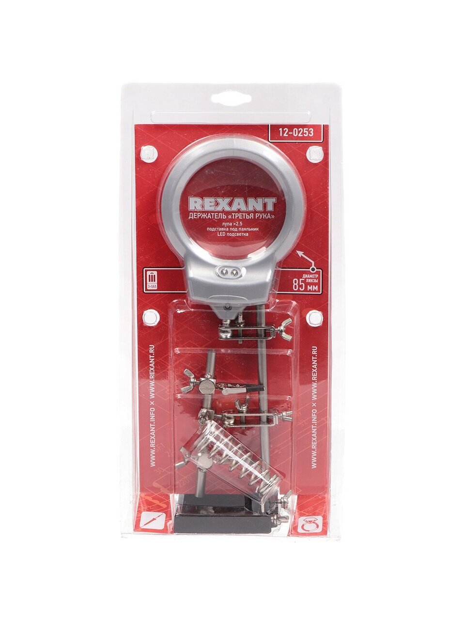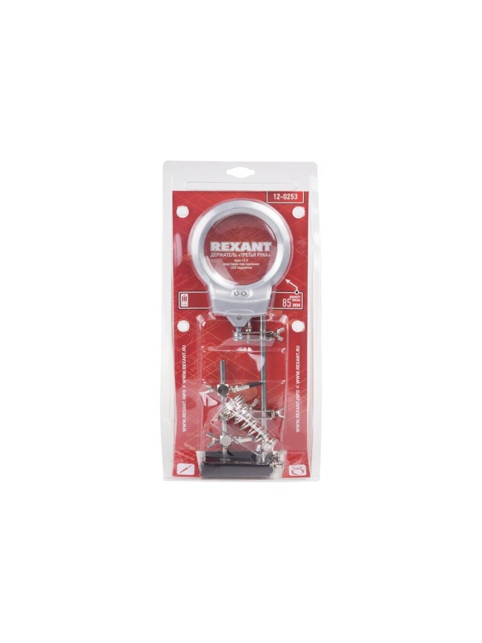 Вы можете приобрести «Держатель с подставкой, третья рука, с лупой х2.5, LED подсветка, Rexant, 12-0253» и другие товары в нашем интернет-магазине в Курске по низким ценам и с бесплатным самовывозом.
