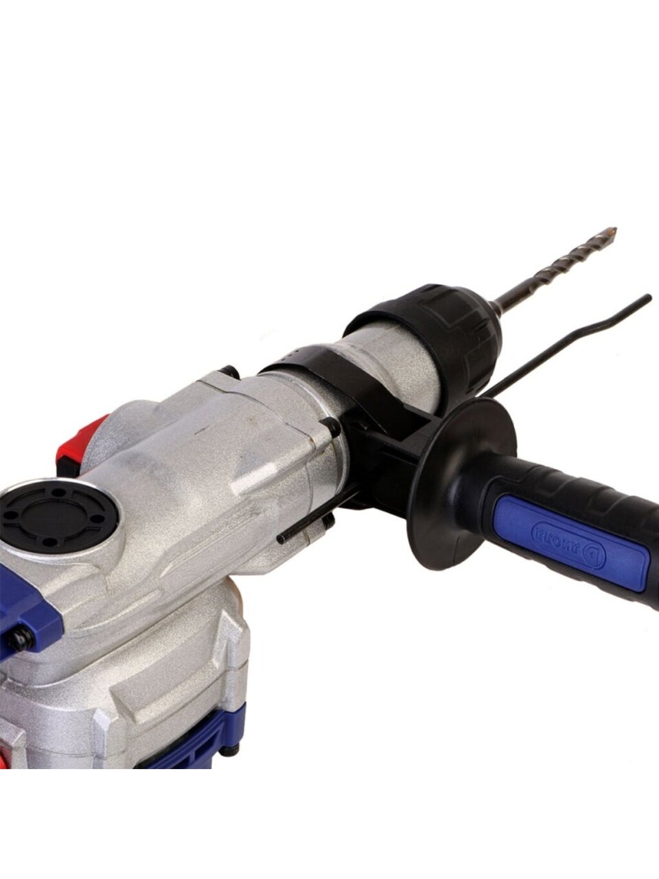 Перфоратор обладает высокой мощностью и частотой ударов, что позволяет эффективно сверлить материалы, такие как бетон, кирпич и камень, а система зажима SDS-plus обеспечивает быструю замену бура или сверла.