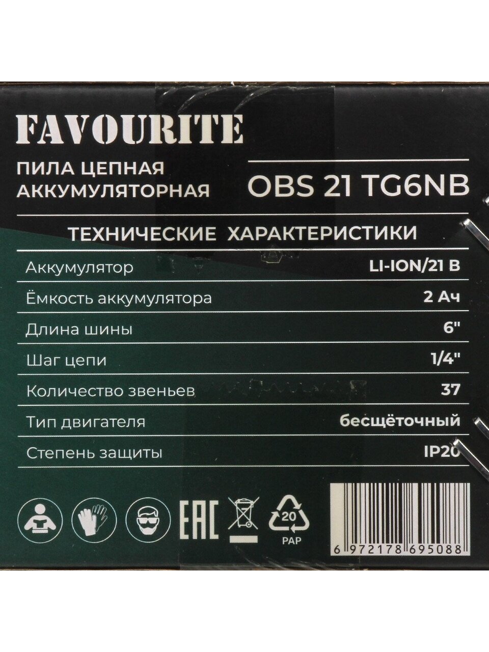 Пила цепная аккумуляторная Favourite OBS 21 TG6NB – идеальный инструмент для домашнего и дачного использования, который сочетает в себе компактность, мобильность и высокую производительность. Благодаря работе от аккумулятора и продуманной эргономике, инструмент обеспечивает свободу передвижения без проводов и удобство эксплуатации одной рукой. Длина шины 15 см и шаг цепи 1/4 дюйма позволяют быстро и точно распиливать древесину, ветки и другие материалы, делая процесс ухода за участком или садами максимально простым и эффективным.