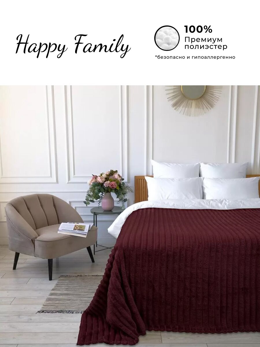 Плед евро 200х220 см Happy Family «Волна» бордовый — уют, тепло и стиль для вашего дома. Мягкий велсофт, прочный полиэстер, размер для всей семьи.