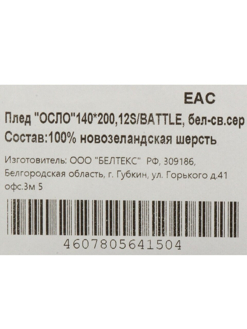 Вы можете приобрести «Плед 1.5-спальный, 140х200 см, 100% новозеландская шерсть, Vladi, Осло, белый, светло-серый, 12S/BATTLE» и другие товары в нашем интернет-магазине в Россоши по низким ценам и с бесплатным самовывозом.