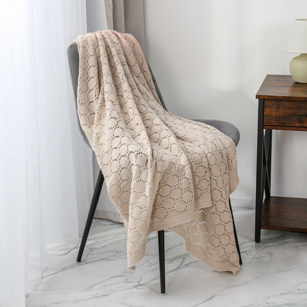 - Вязаная фактура и бежевый цвет создают атмосферу уюта и стиля в любом интерьере.