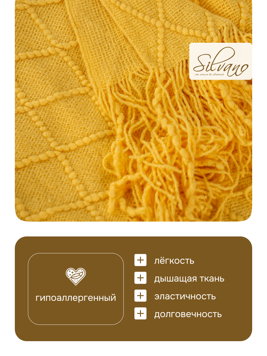 Плед 1.5-спальный Silvano «Теплые объятия», 130х180 см, горчичный — уют и стиль для дома, дачи или авто по доступной цене. Выбор для ценящих тепло и комфорт.