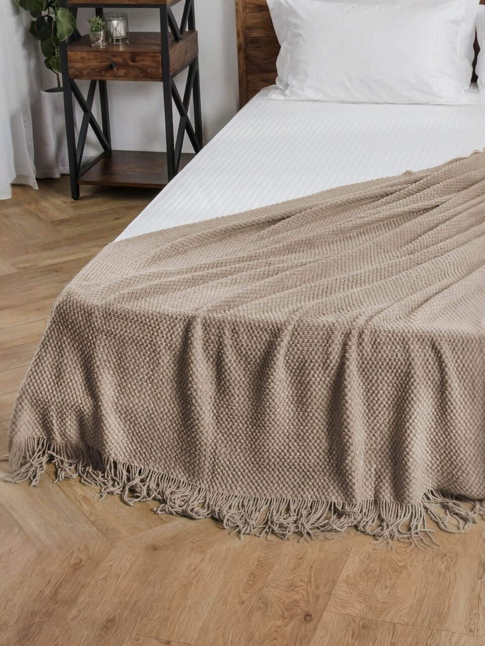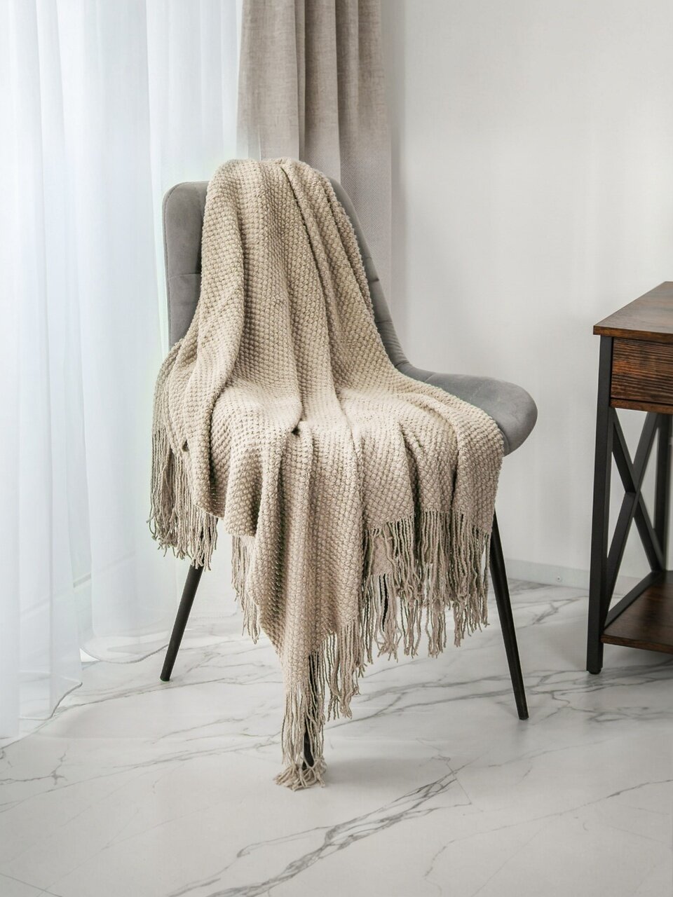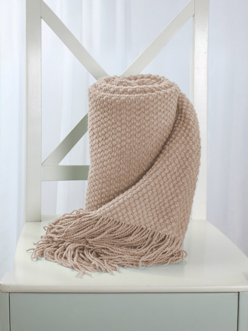 - Вязаный плед с эффектом «теплых объятий» — мягкость и уют в каждом прикосновении.