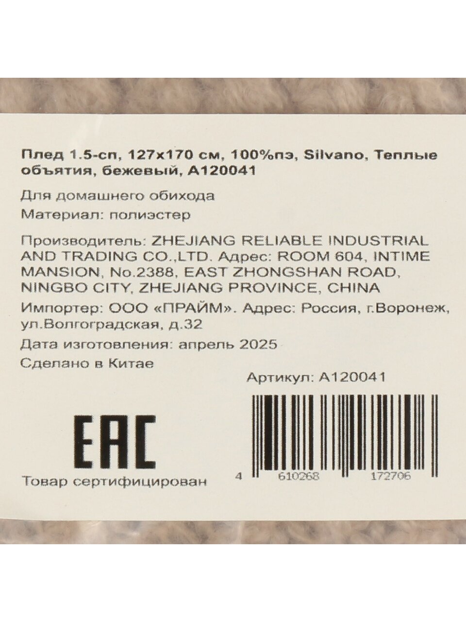 Плед Silvano «Теплые объятия» 1.5-спальный 127х170 см: уют и тепло для дома и дачи по выгодной цене — универсальный выбор для подарка и комфорта.