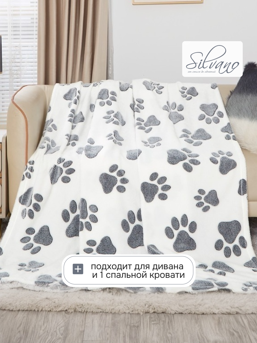 Плед 1.5-спальный 150x200 см велсофт жаккард с анималистичным рисунком "Лапки" от Silvano — уют и тепло для дома и дачи по доступной цене, мягкость и долговечность в каждом волокне.