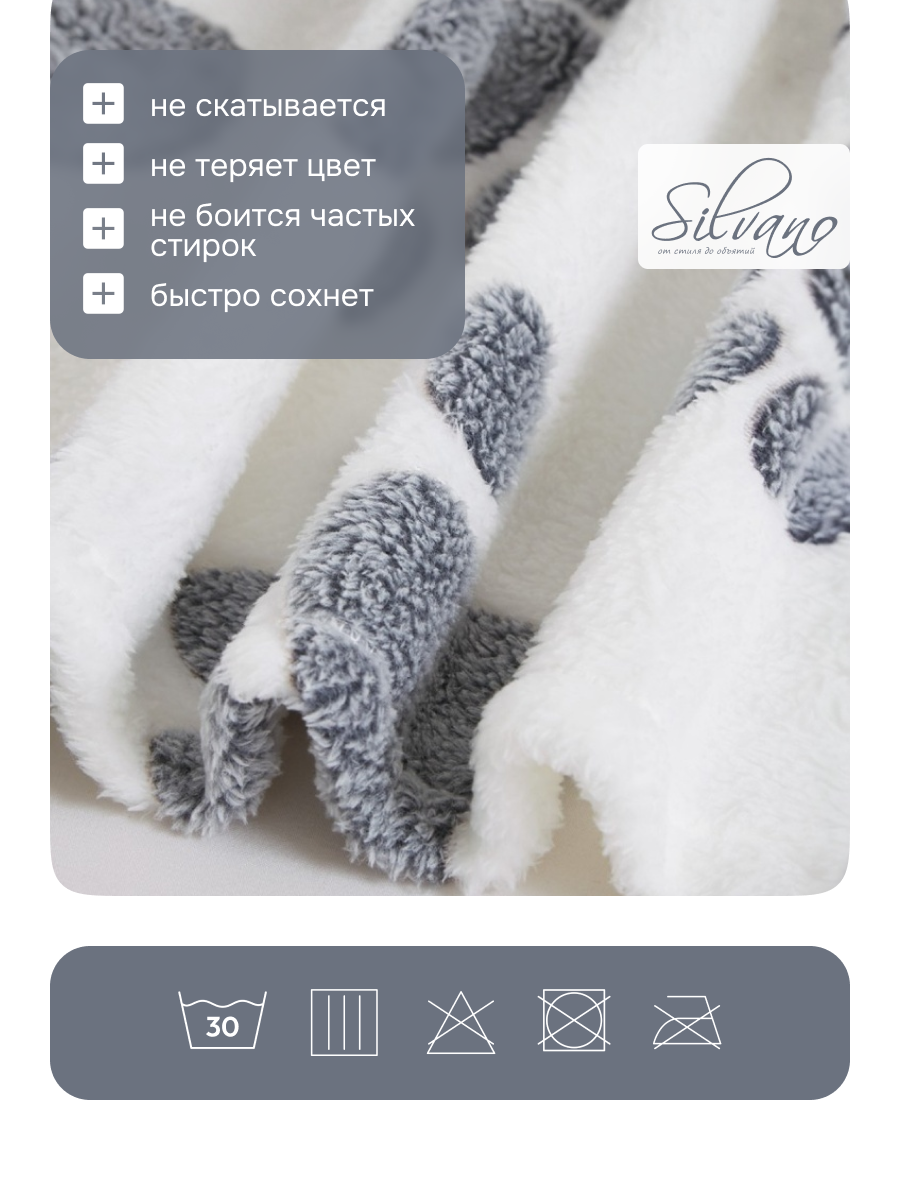 Плед 1.5-спальный Silvano "Животные, Лапки" — выбор для тех, кто ищет недорогой и теплый плед для дома, дачи или в подарок. Современный велсофт жаккард обеспечивает плюшевую мягкость и хорошо сохраняет тепло, а короткий ворс не скатывается и не вызывает аллергии. Благодаря 100% полиэстеру изделие долго сохраняет форму, не линяет и легко стирается при 30–40°C, что особенно важно для семей с детьми и домашними животными.
