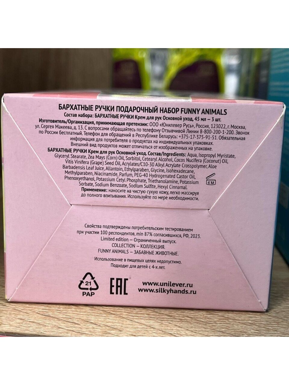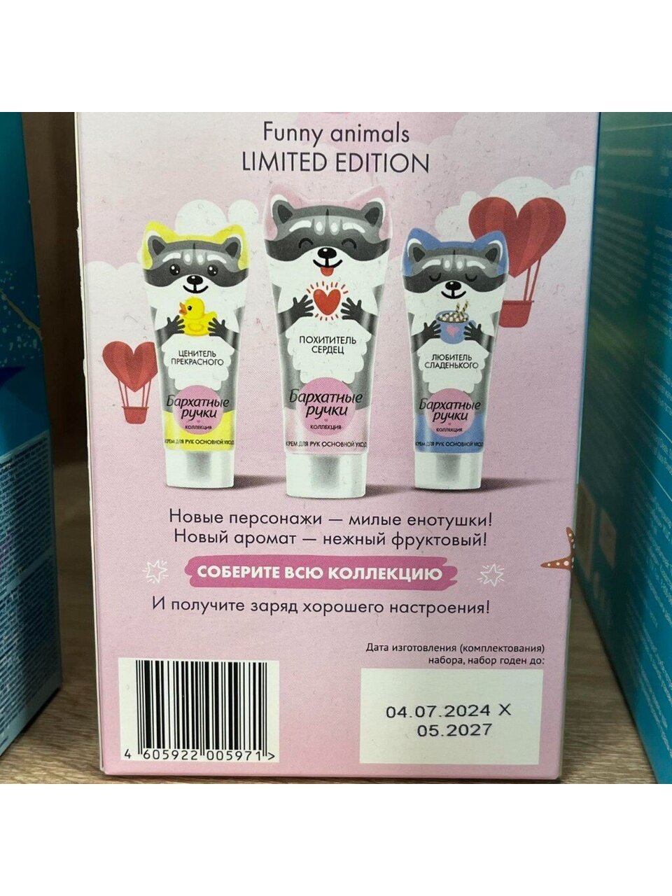 Подарите себе или близким удовольствие от использования качественных и эффективных средств ухода за руками. Набор "Funny Animals" от "Бархатные ручки" станет прекрасным дополнением к ежедневному уходу и подчеркнет индивидуальность своего обладателя. Позвольте себе и своим близким наслаждаться бархатной мягкостью и нежностью кожи рук каждый день.