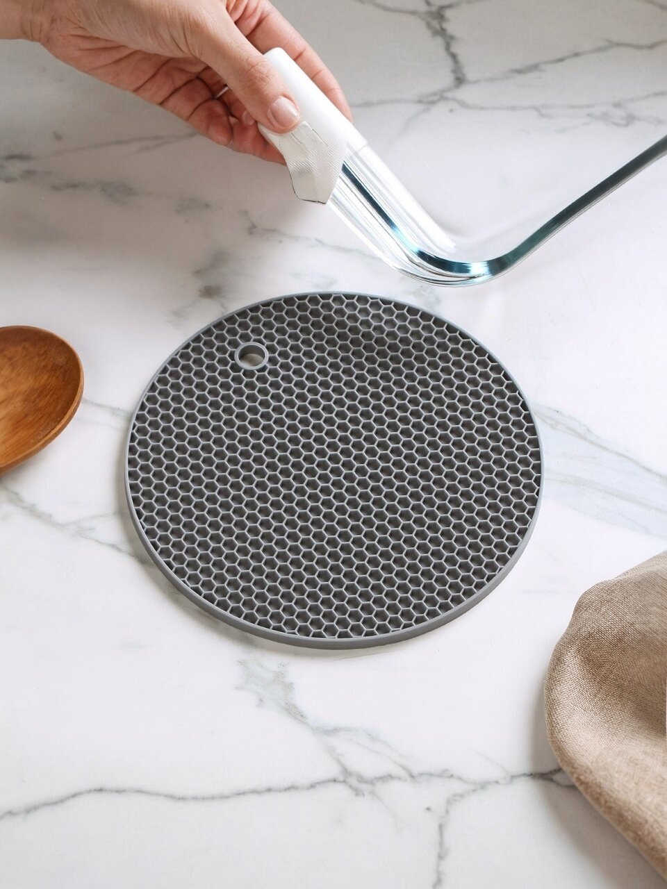 Откройте для себя идеальное решение для кухни с подставкой под горячее из силикона от Daniks. Элегантный серый цвет и размер 17.5*17.5 см делают ее незаменимой для любой кухни. Защитите поверхности от высоких температур и добавьте стиль в интерьер.